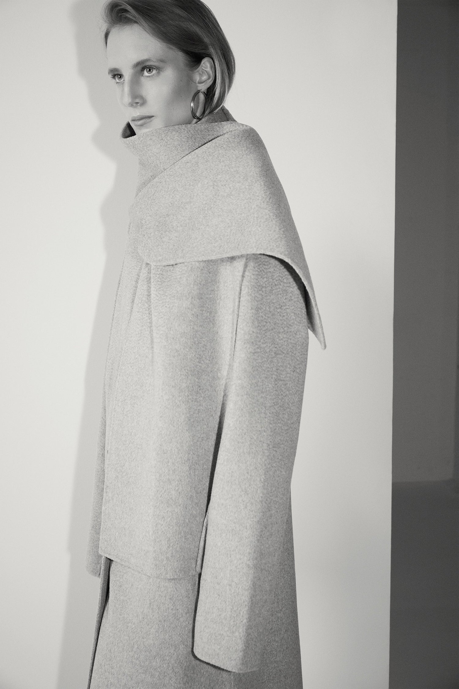 Made from the most luxuriously soft lambswool, our Mio Winter Coat is the ultimate outerwear piece.  The beautiful dappled silver grey hue and sumptuous scarf neckline envelope against cooler climes. Interplayed with a modern, minimal silhouette the Mio Coat evolves perfectly from day through to night.