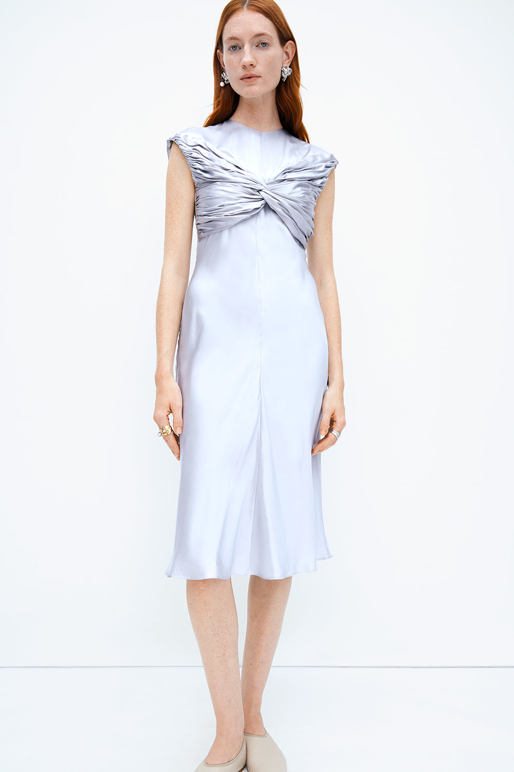 The Kerrie Dress is crafted in beautiful silk with a delicate lustre. Featuring our signature twist detail across the bust and a bias cut silhouette, this is a statement piece that transcends the seasons.
