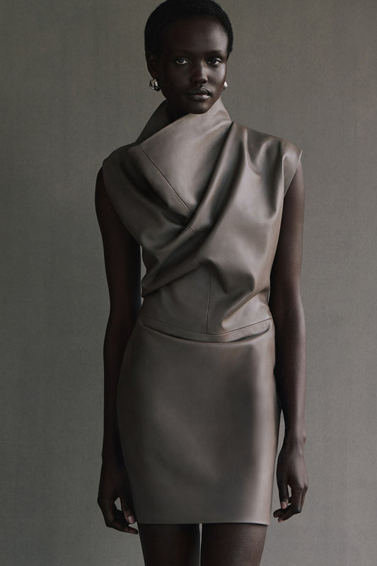 Olya Leather Dress Taupe