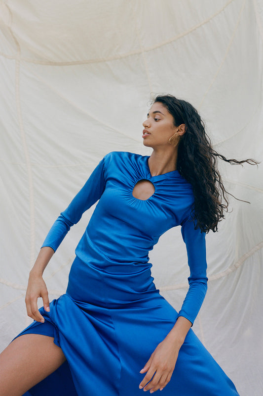 Noor Silk Dress Cobalt