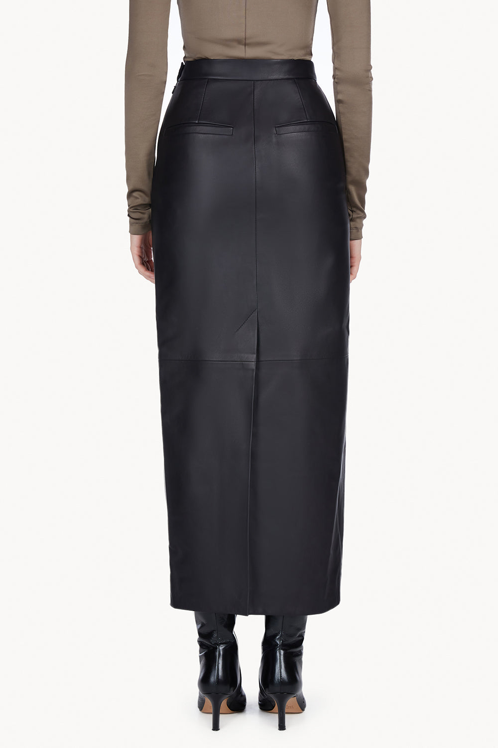 Crafted in a soft buttery Nappa leather, the Mari Skirt is impeccably cut to create a modern slim silhouette. The pencil skirt design is finished with a clean back spilt and the hemline finishes just above the ankle. A piece that will become more beautiful as it ages, this is the perfect investment piece. Pair with the Rae Jacket to complete the look.
