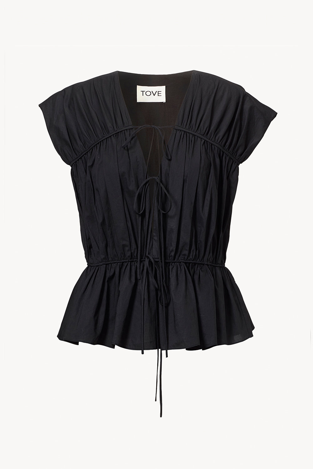 Thea Organic Cotton Gathered Sleeveless Top Black