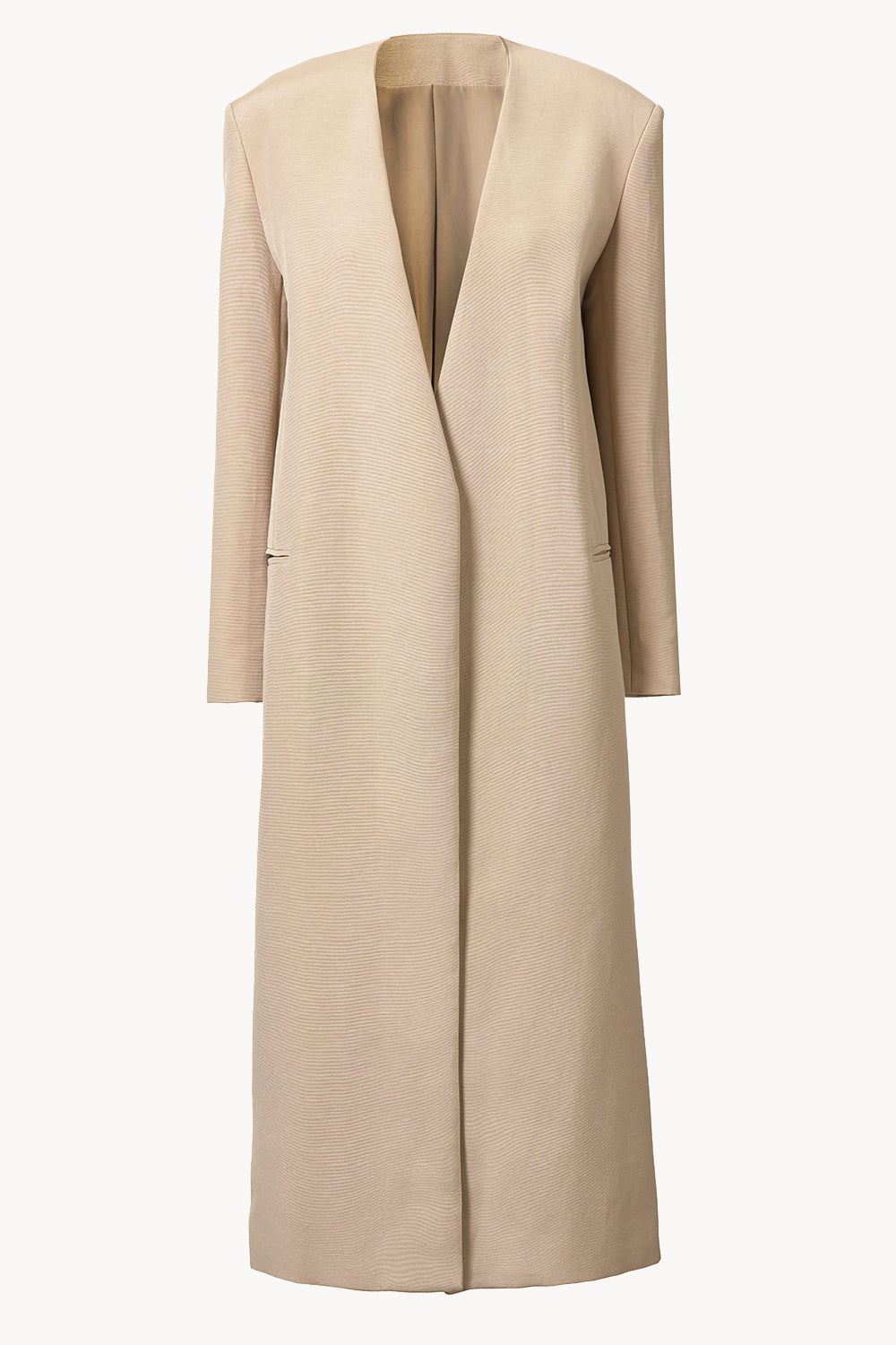 The ultimate in refined luxury tailoring, the Allegra Longline Jacket is crafted in an Italian cotton blend tailoring fabric. With an elegant long line silhouette conceived to elongate and in the perfect camel hue, the Allegra Longline Coat is a timeless piece to wear this season and beyond.