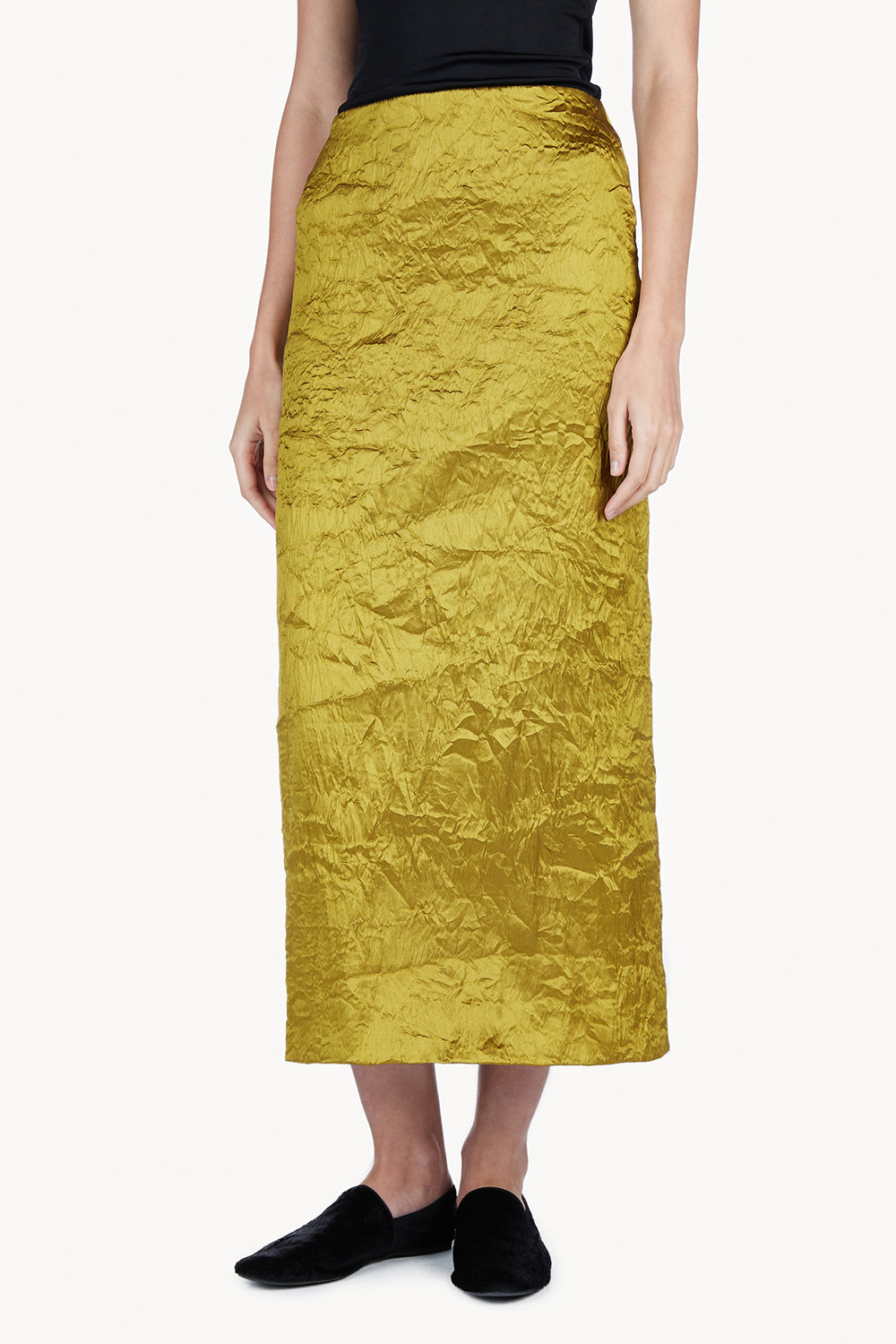 The Alma Skirt is crafted in a tumbled stretch metallic gold Italian fabric and is a standout piece from the Resort 2025 collection. The fitted midi-length pencil skirt silhouette beautifully accentuates the figure to finish at ankle length. Secured by a centre back zip, the Alma Skirt is unique evening wear piece.