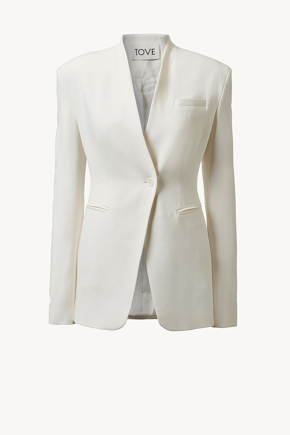 The Aster Jacket is crafted from a luxurious Italian viscose-wool blend. Impeccably cut for a slimline silhouette, this longline, collarless jacket features a front pocket detail and a single-button closure to accentuate the waist. Slim longline sleeves and strong shoulder silhouette make the Aster Jacket the perfect transeasonal piece. Wear with the Talia Trouser to complete the look.