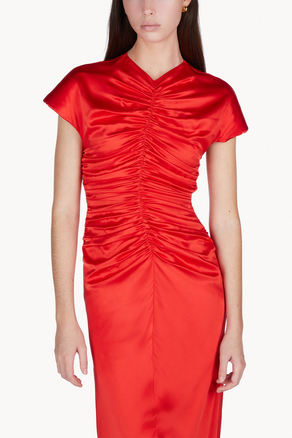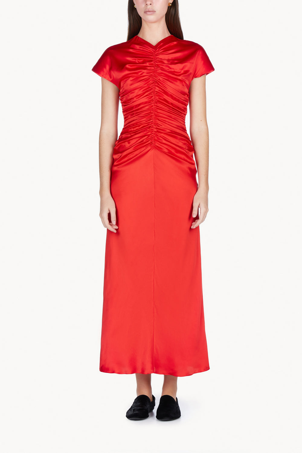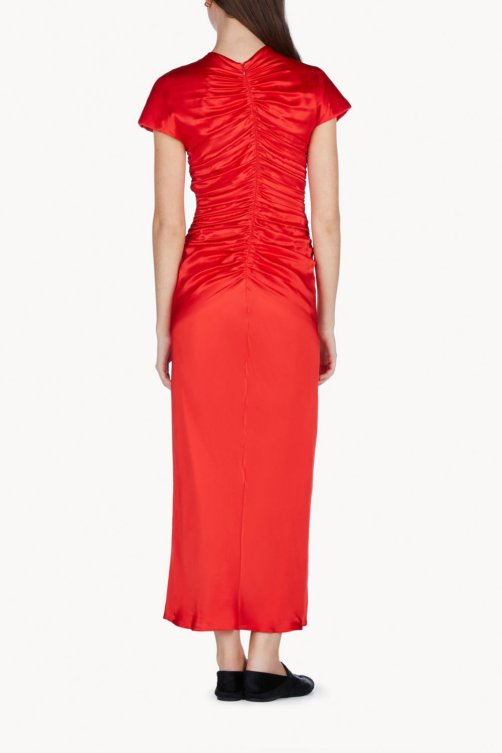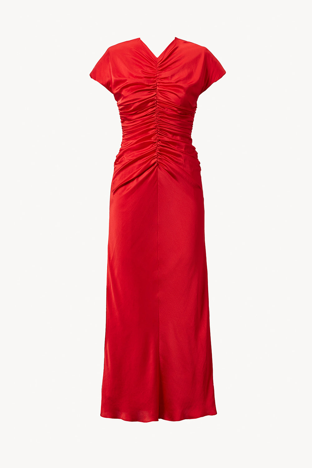Crafted in 100% silk, the Aubree Dress has been thoughtfully cut to skim the body. Delicately gathered at the centre front and back seam, the silk drapes and falls to create a beautiful pleating detail. With the hemline finishing just above the ankle, the Aubree Dress is the perfect day to evening occasion dress.