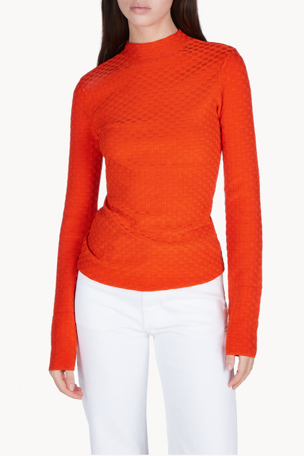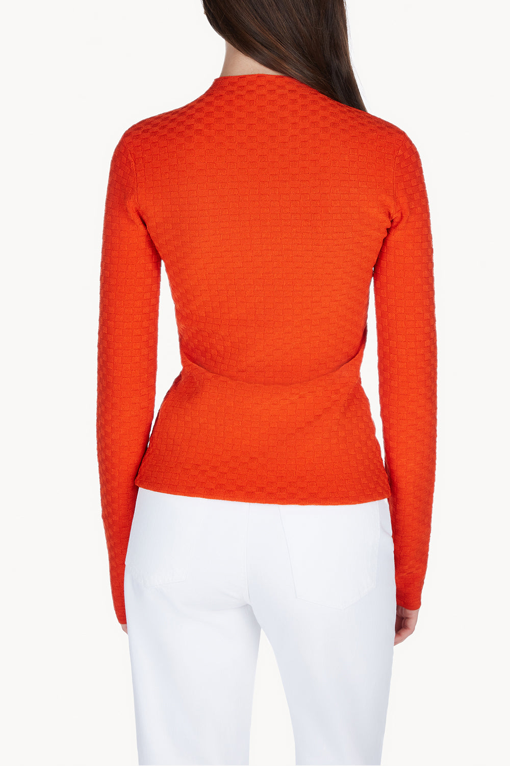 The Avi Top is crafted in an Italian viscose yarn with a textural basketweave stitch design and delicately soft lustre. With a high neck detail and slim silhouette throughout the sleeves and body, this is a versatile piece perfect for transitioning from day to evening with ease.