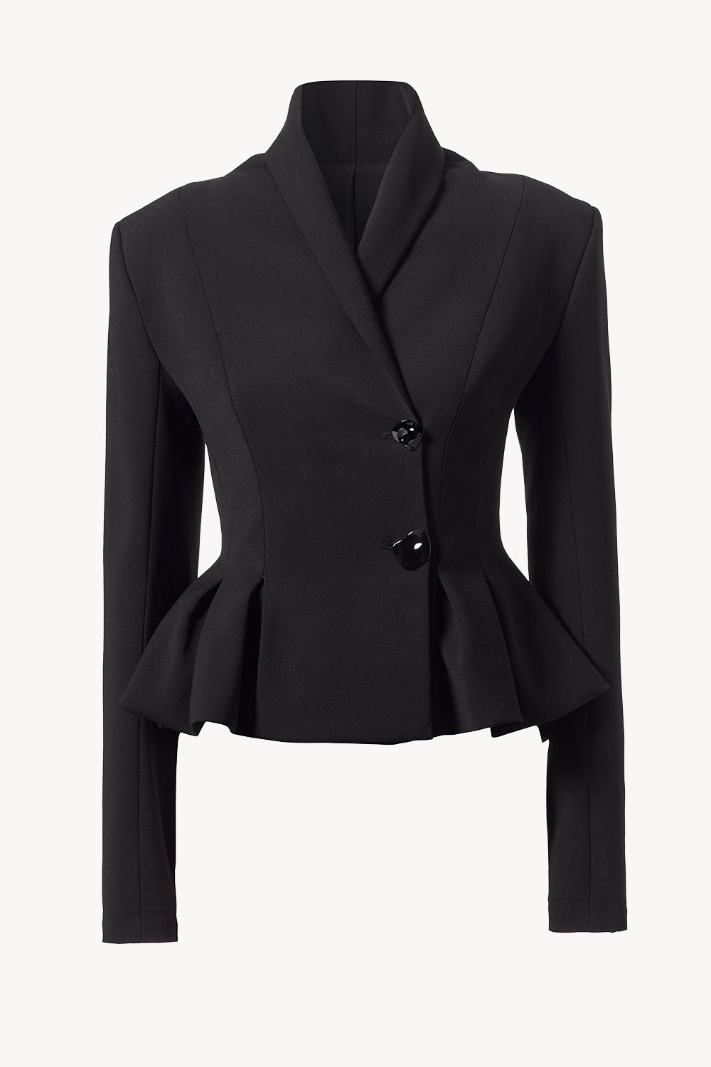 Our Cali jacket is crafted in an Italian viscose wool blend. Details include a subtle shawl collar neckline, slimline bodice and delicately pleated waist. A soft bubble hem peplum finishes the look.