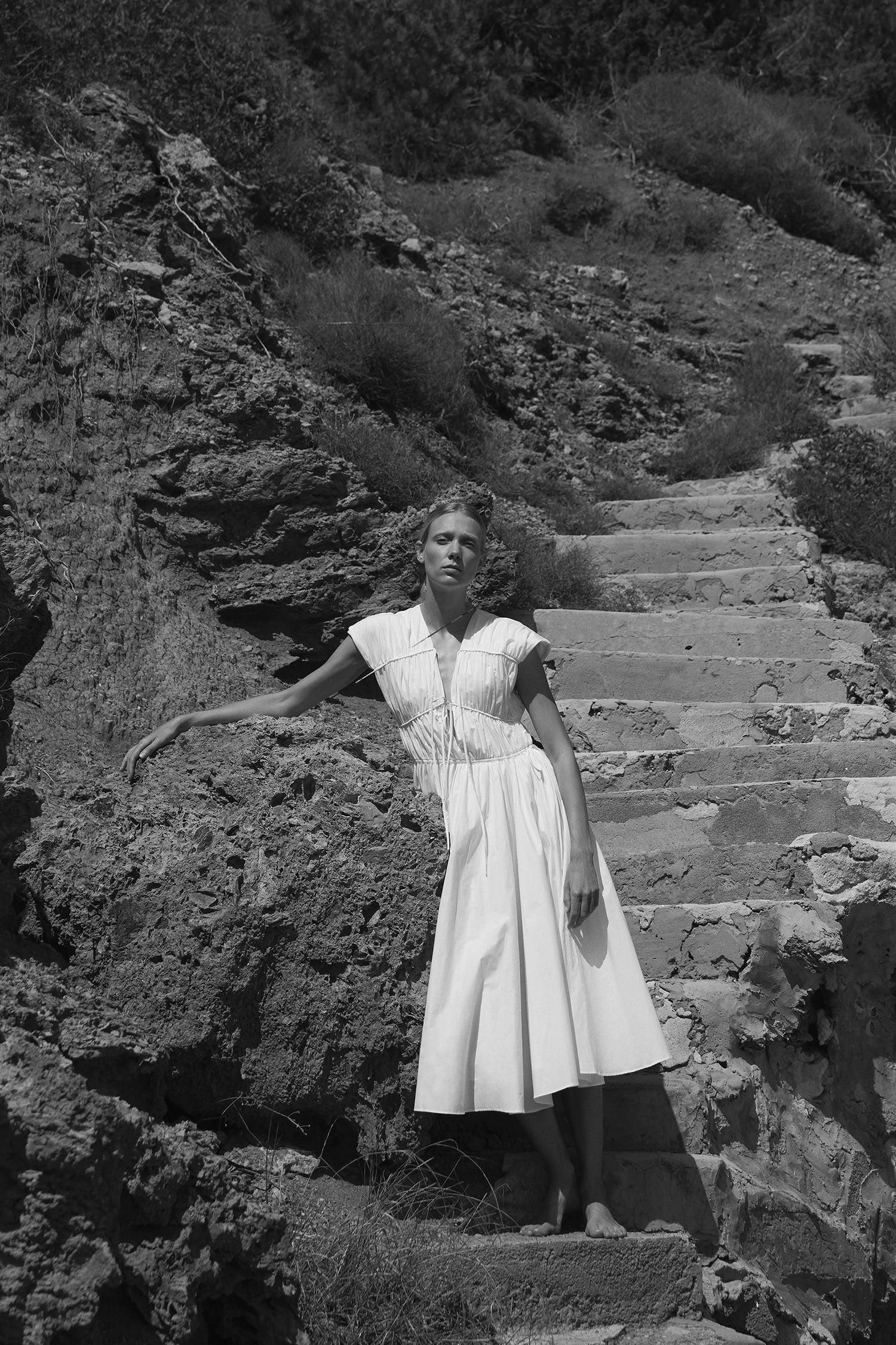 Our cotton Ceres dress is crafted from 100% Organic Cotton and features a beautiful gathered detail throughout the bodice and low neckline. Delicate ties at the centre front and waist mean the dress can be adjusted to suit the wearer. A generously full circle skirt finishes off this versatile dress. As perfect for summer beach days as an evening occasion.