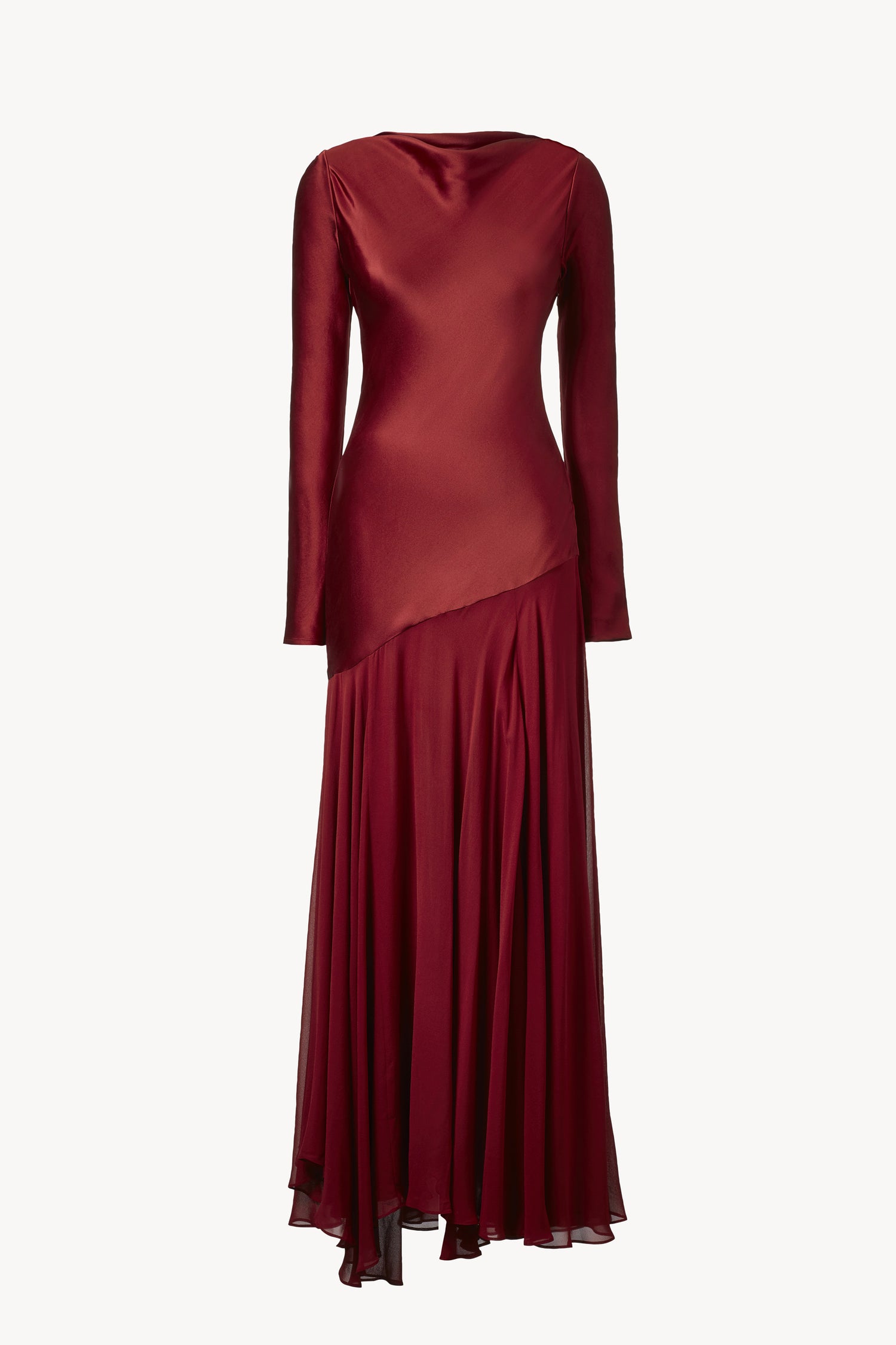 The long-sleeved Cordelia Dress is exquisitely crafted from pure silk. Designed with an elegant boatneck, the soft silk cascades dramatically from the waist, featuring swathes of silk satin and sheer silk chiffon to finish at floor length. Secured with an invisible zip and featuring thoughtful seamed details, the Cordelia Dress is a standout piece from the Resort 26 collection.