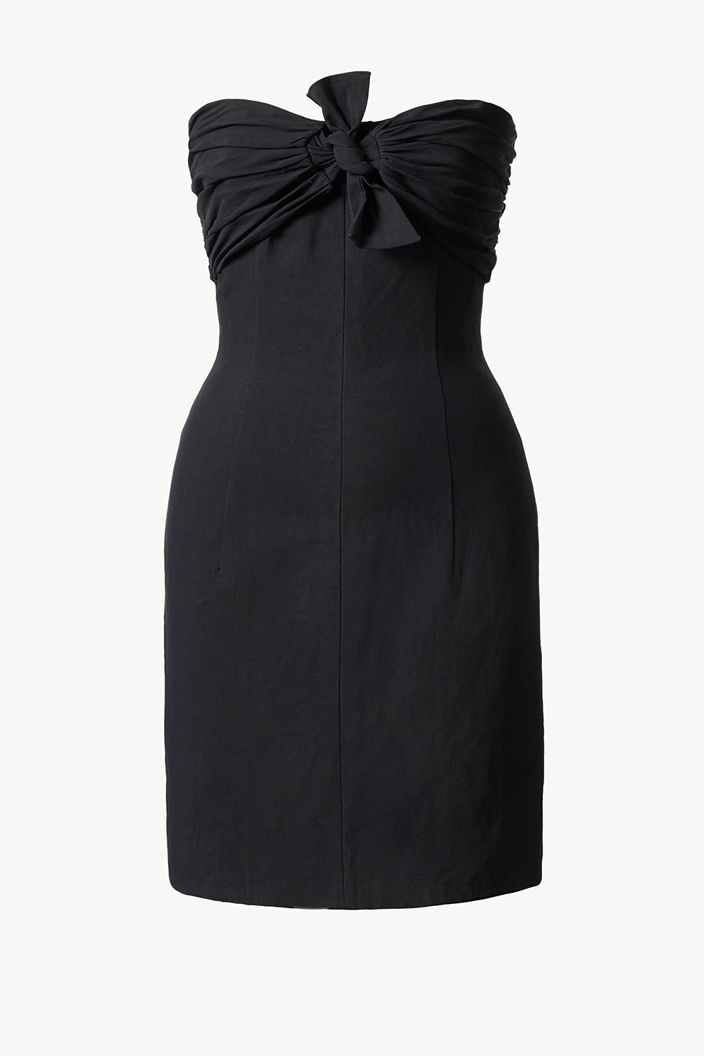 The Dipti Dress is crafted in a beautiful linen cotton blend. Gathered at the bust and closed by a tie front detail, this dress is the ultimate summer piece. Panelled details contour the body with a hem line that finishes just above the knee. The Dipti Dress is a summer piece that will transcend the seasons.