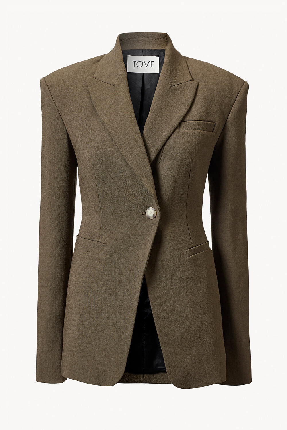 The Elda Jacket is crafted from a luxurious Italian viscose-wool blend, in a deep olive tone. Impeccably cut for a slimline silhouette, the jacket features front pockets and a refined single-button closure. Pair with the Roan Trouser.