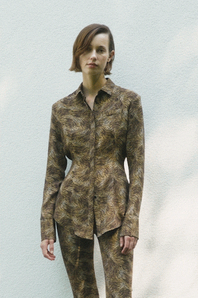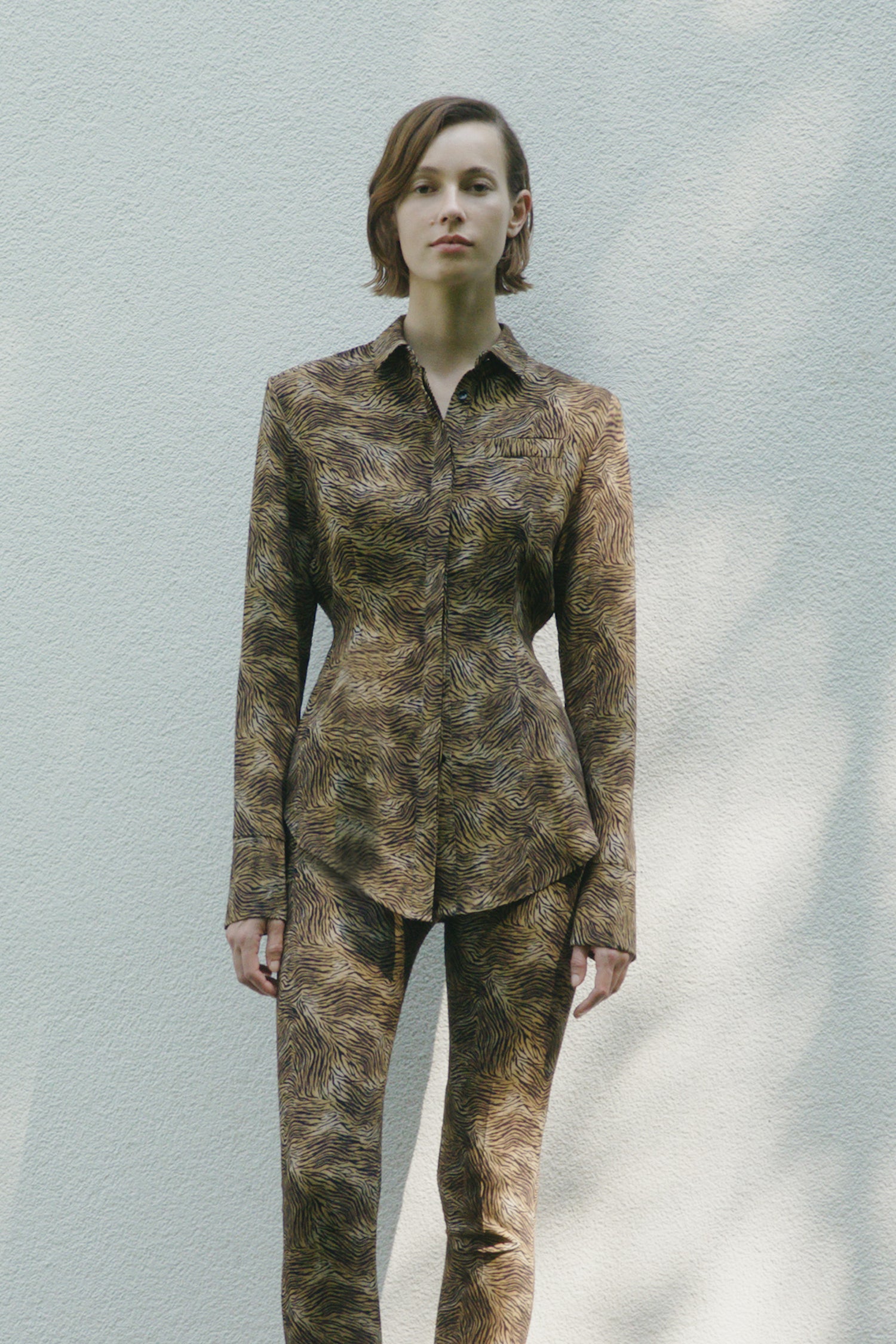 The Elvin Shirt in textured zebra print is a refined wardrobe staple, cut to a softly tailored silhouette that skims the body. Crafted from a luxurious viscose-elastane blend with gentle stretch, it features a sharp collar, elongated cuffs, and a discreet chest pocket. Finished with a clean button placket, the Elvin Shirt embodies effortless sophistication, especially when paired with the Drew Trouser.