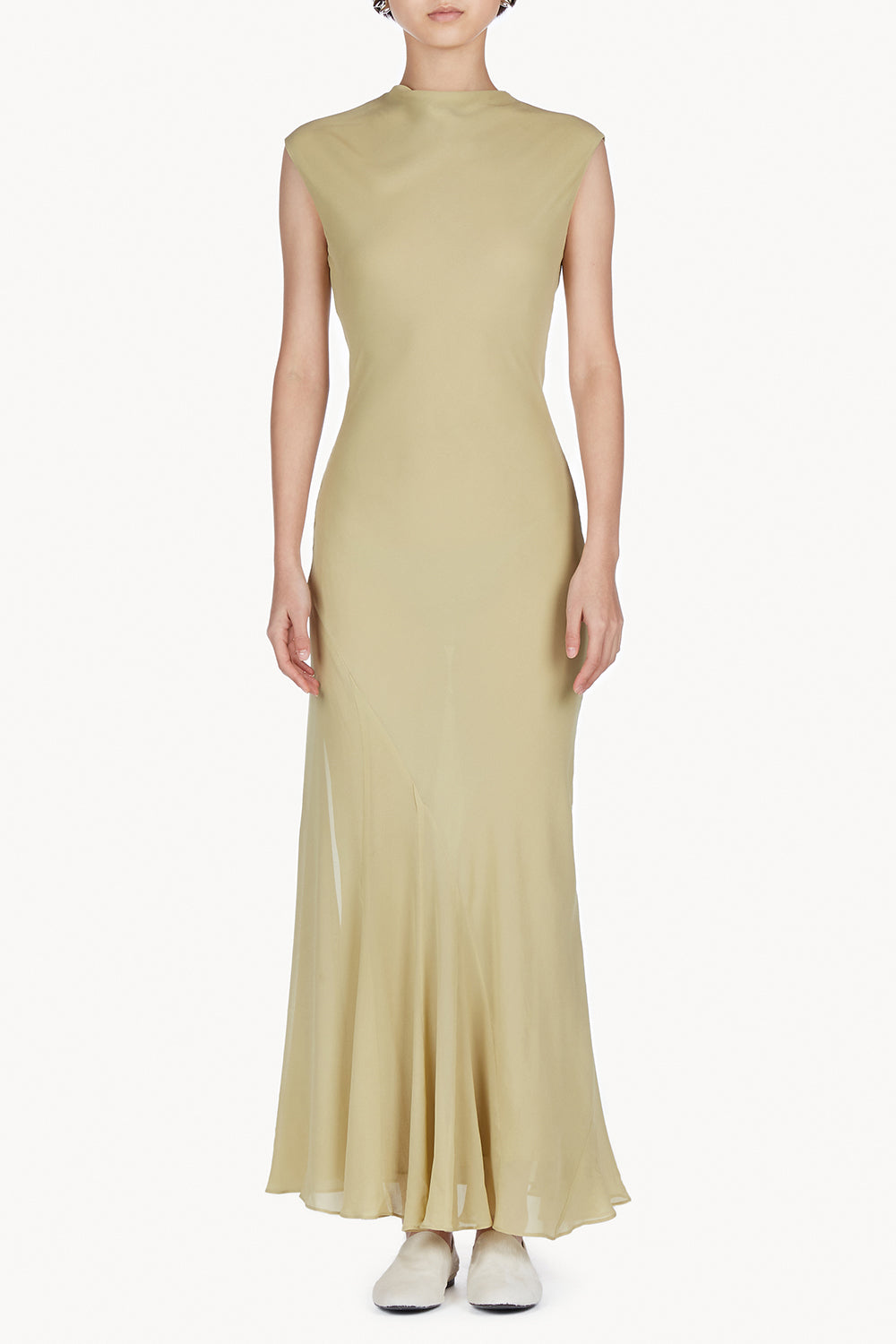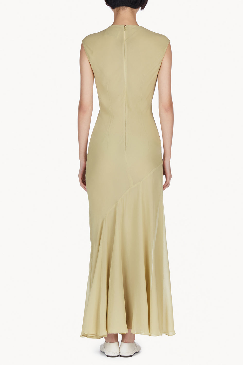 Bias cut for a considered fit, the Erin Dress is crafted in a delicate silk chiffon. With a draped cowl neckline detail and organic seamed detail along the skirt of the dress, the Erin Dress is secured by a centre back zip and is the perfect occasion piece.