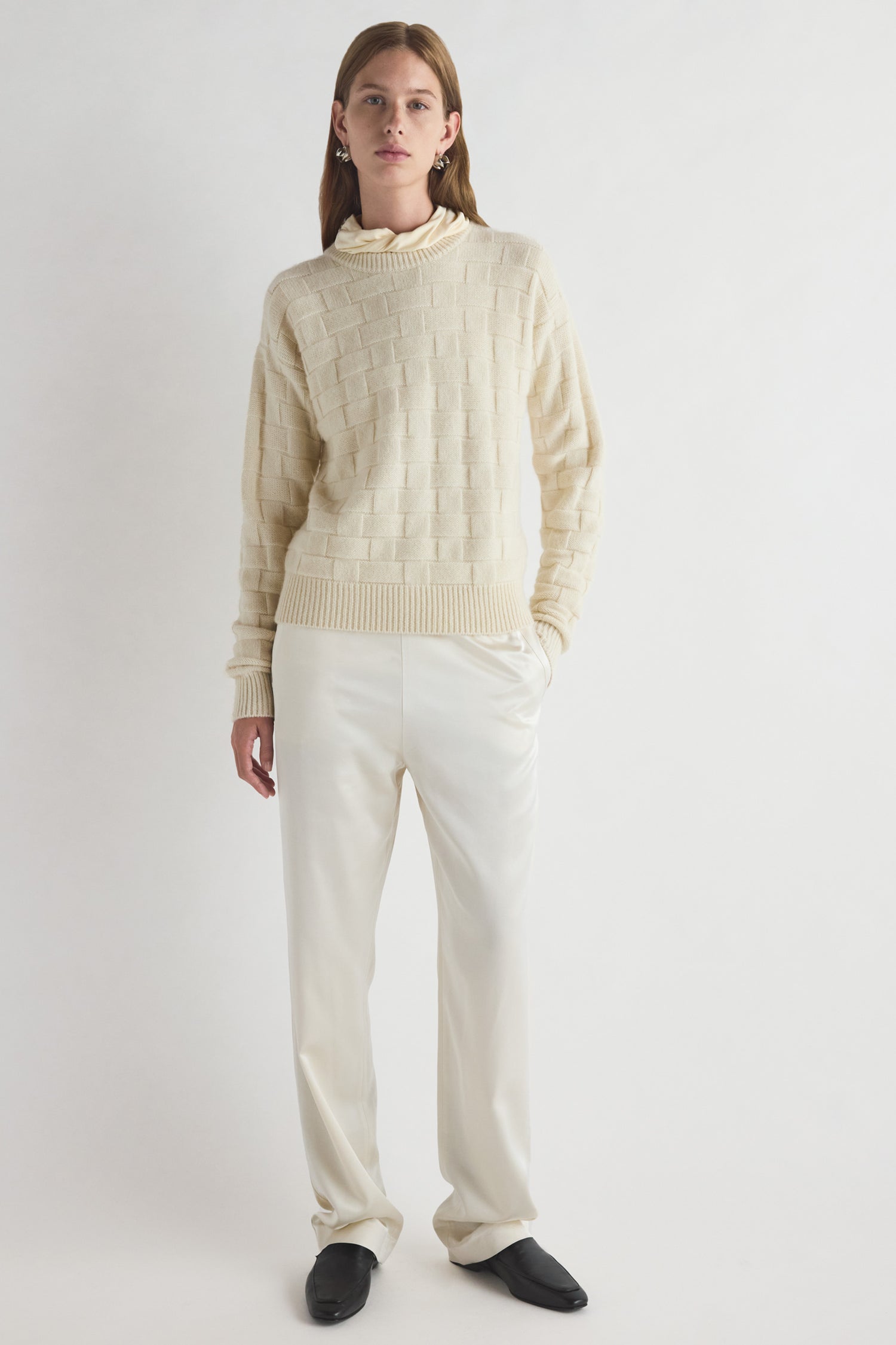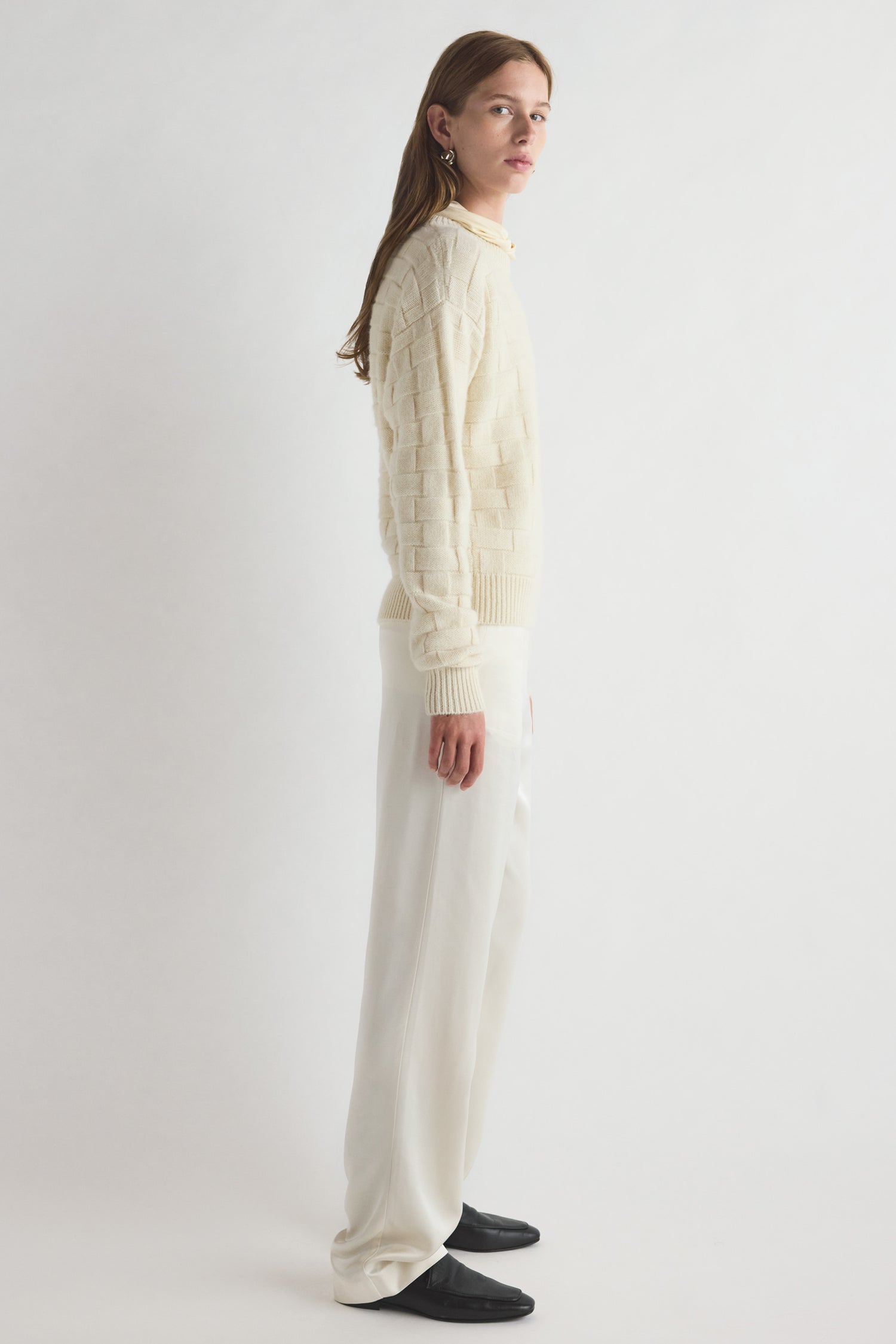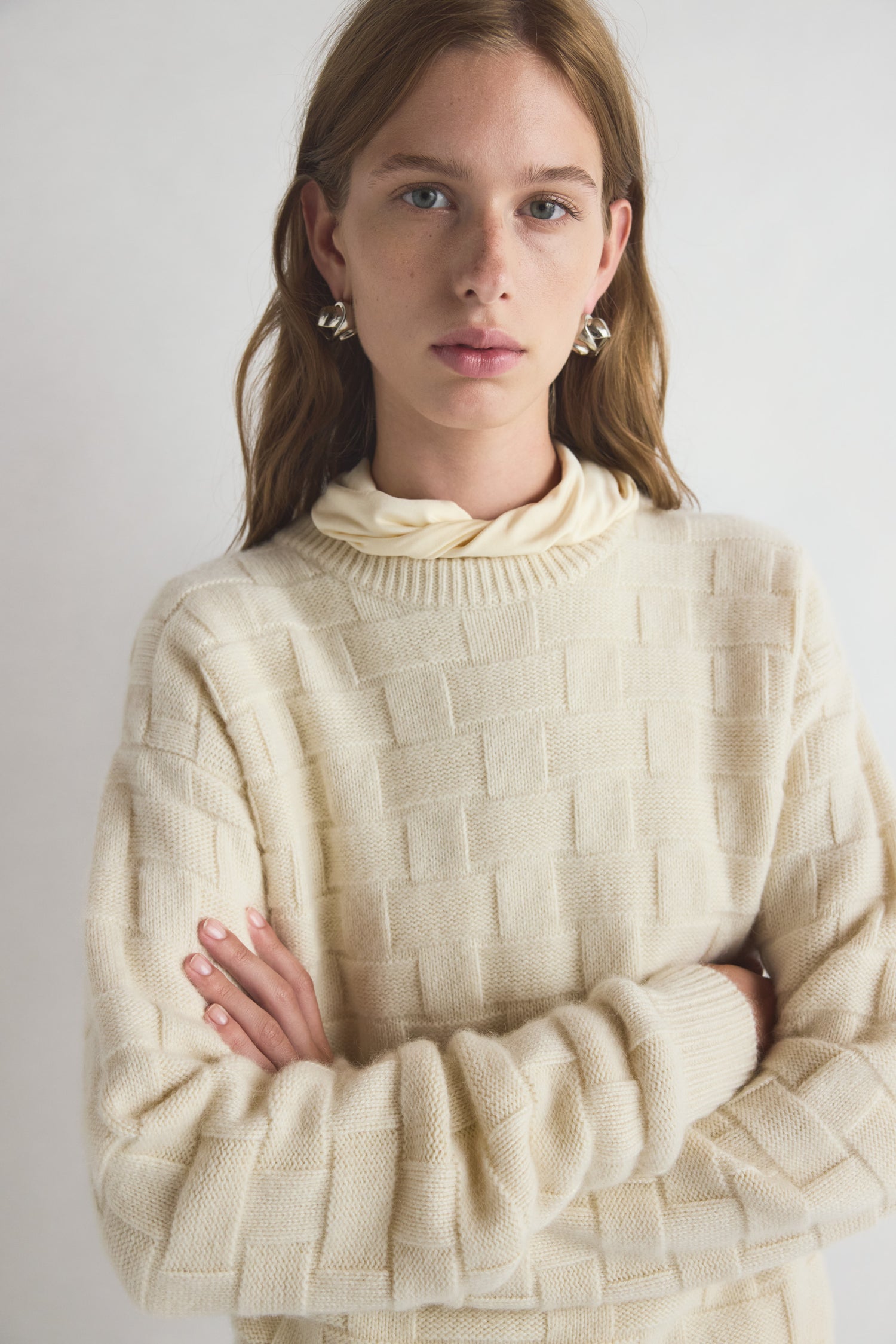The Etoile Jumper is crafted from a luxurious blend of wool and alpaca with a textural basket weave design. Sumptuously soft, this knitted jumper is one to return to season after season. With a minimal, refined look and a gentle rounded neckline, this is an heirloom piece.