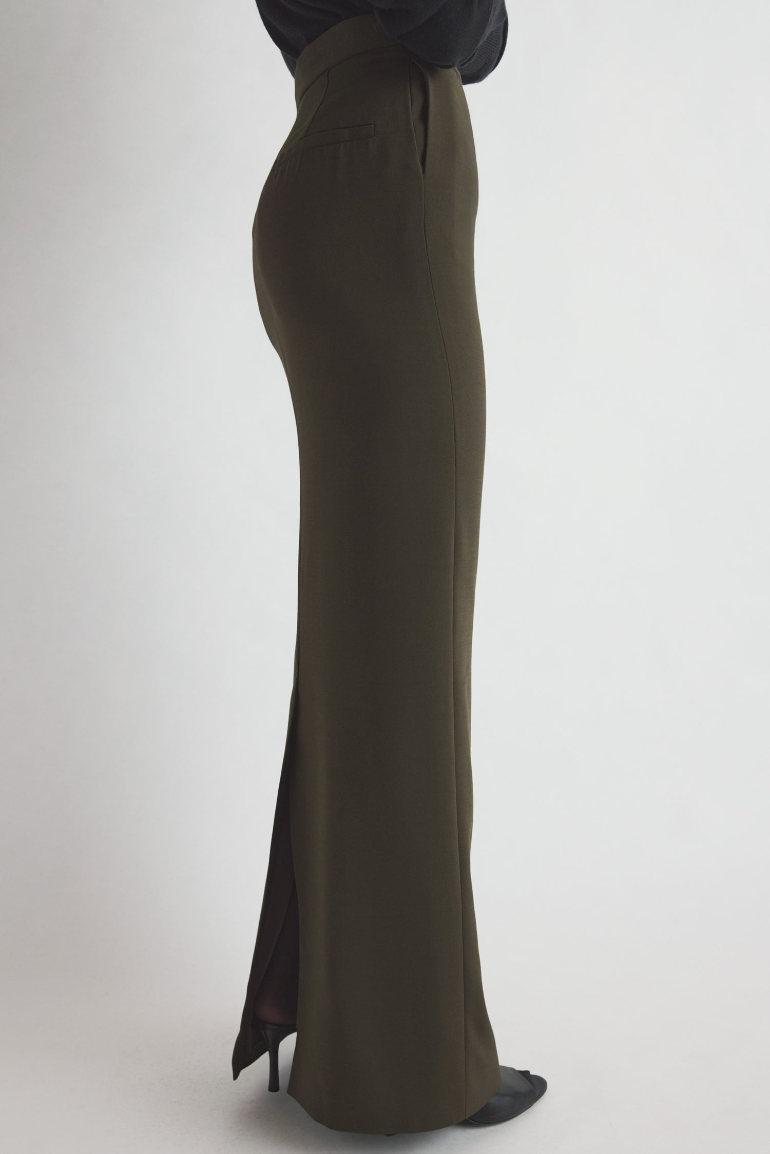 The Fey Skirt features a softly structured straight silhouette. Crafted from a luxurious blend of viscose, wool with elastane - woven in a specialist Portuguese mill - it offers subtle stretch and fluid movement. Finished with a clean waistband and concealed zip fastening, the Fey Skirt balances ease and refinement for a tailored look.