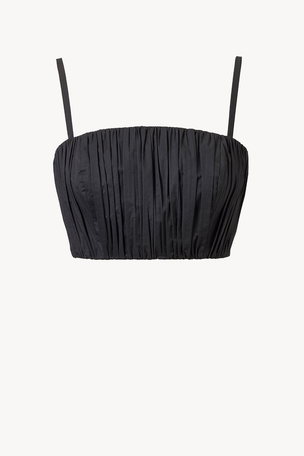 Our Gigi Bralette is made from 100% Organic Cotton . A structured fit combined with a stretch, crisp cotton, ensure the perfect fit. The Gigi Bralette features the signature gathered detailing across the bust that is echoed throughout the collection. The longline silhouette ensures a demure reveal across the body when worn back with our high waisted Deen Trouser.