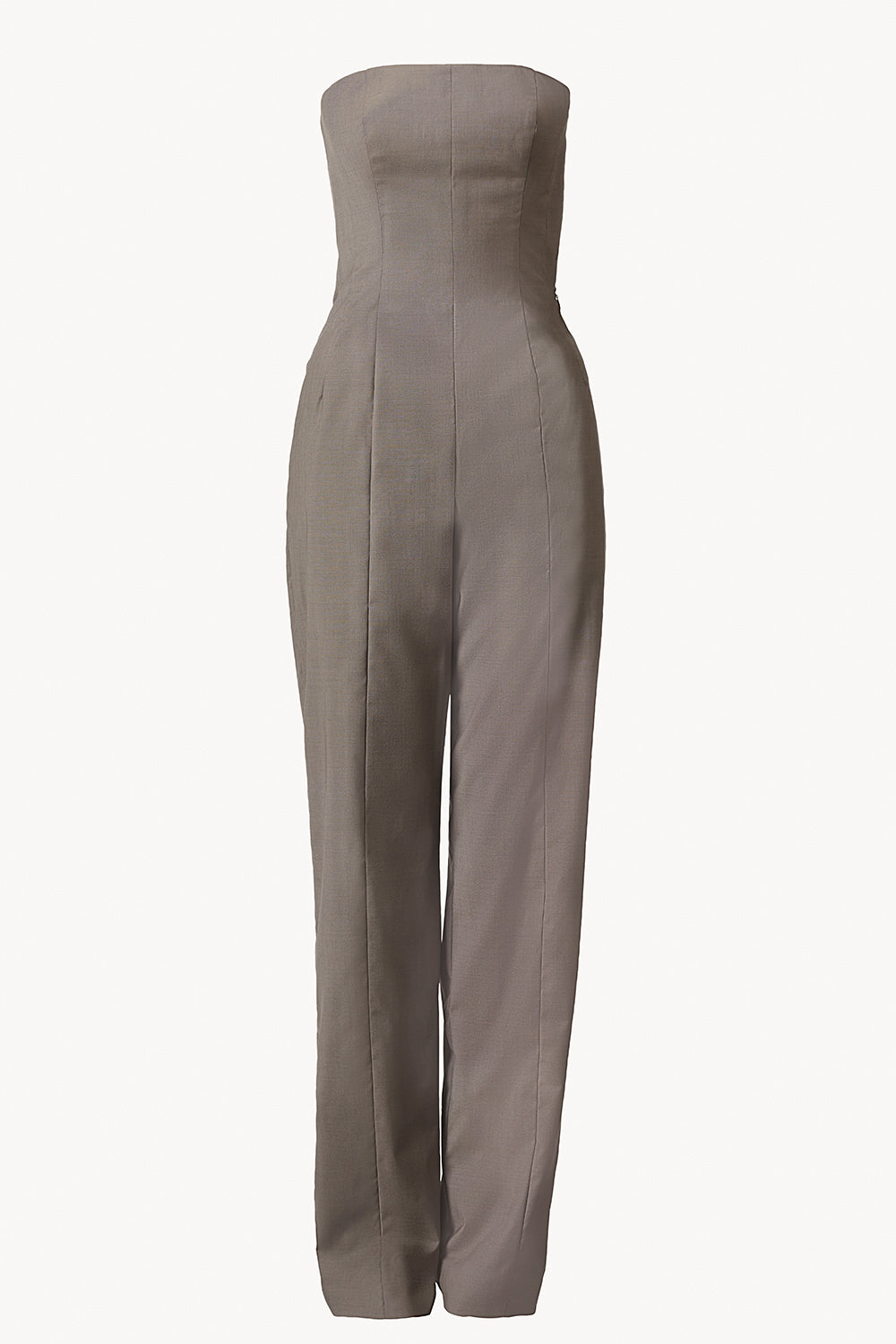 The Ita Jumpsuit features a minimal bandeau design with a fitted bodice, side pockets and a relaxed straight leg silhouette. Crafted in virgin wool with a deep gunmetal tone, the Ita Jumpsuit is a modern day to evening piece from the Spring Summer 2024 collection. Pair with the Diane Jacket for a relaxed tailored look.