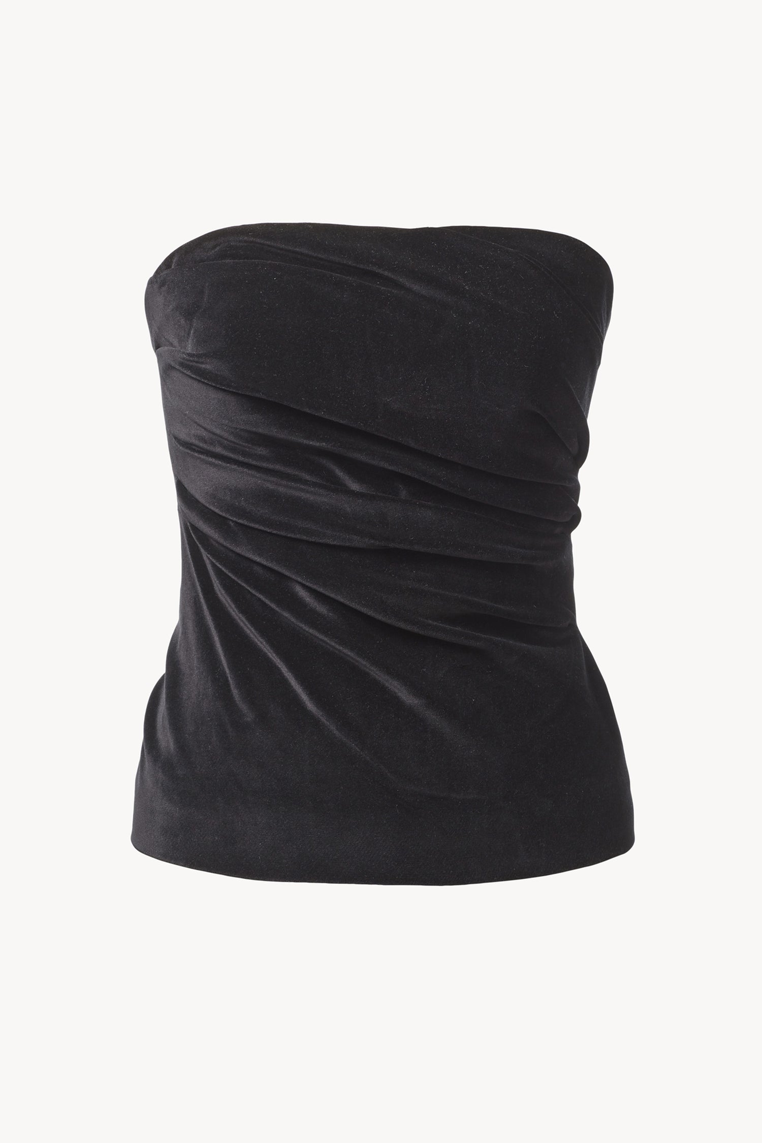 The Izel Velvet Bandeau Top Black is a refined bandeau silhouette, elevated by gentle, organic fold detailing through the bodice. Finished with a concealed centre back zip. Pair with tailored trousers or relaxed denim for an effortlessly polished look.