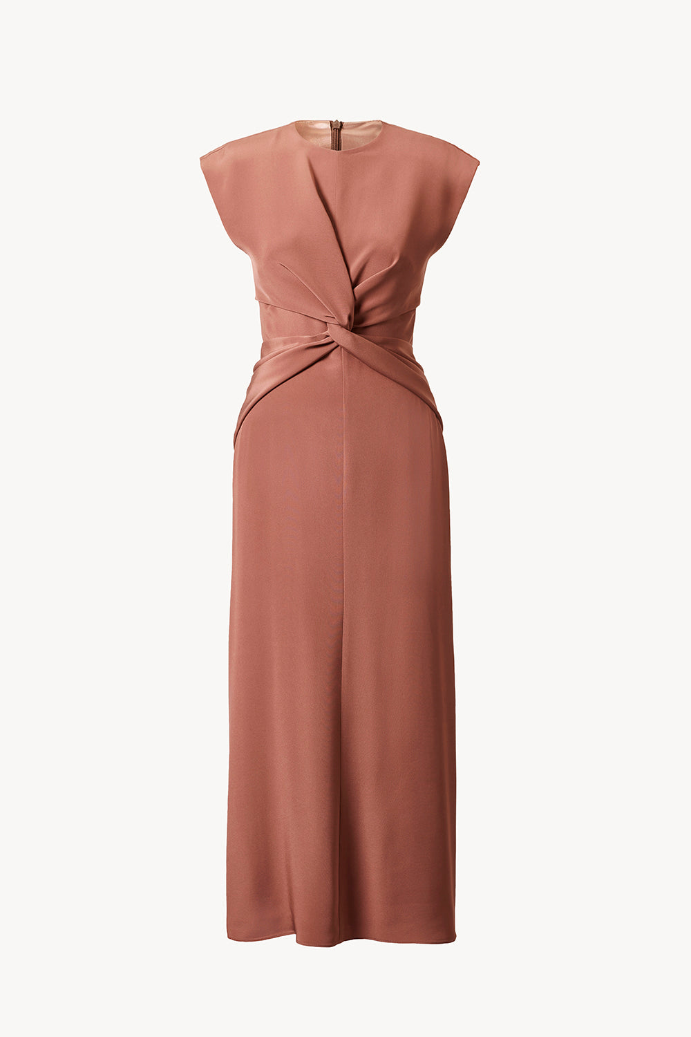 The Jessa Dress is crafted from silk and features our signature hand twisted detail at the waist. Grown on sleeves and a soft curved neckline complete the design creating a refined day to evening dress.