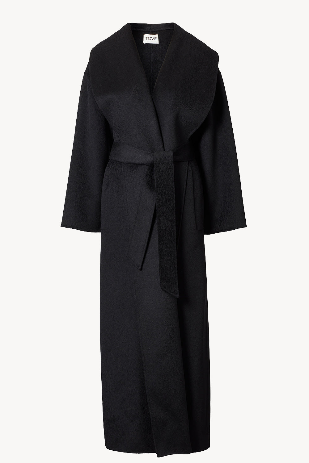 Made from a luxurious lambswool, the Jore coat is shaped to a generous, enveloping silhouette with expansive shawl lapels and a sweeping maxi length