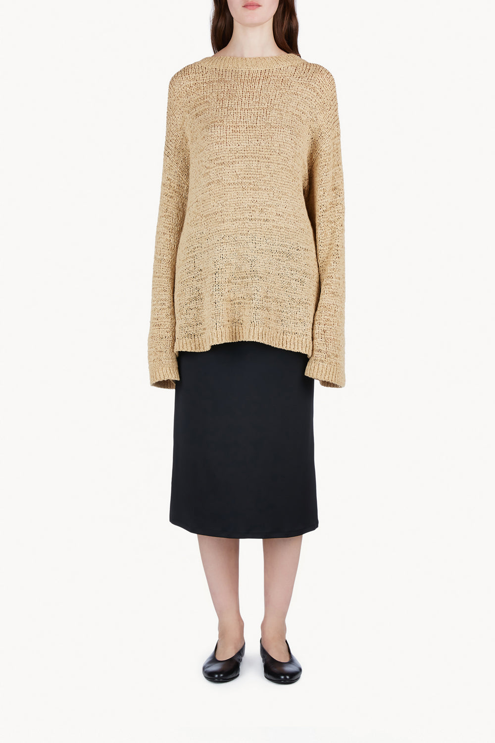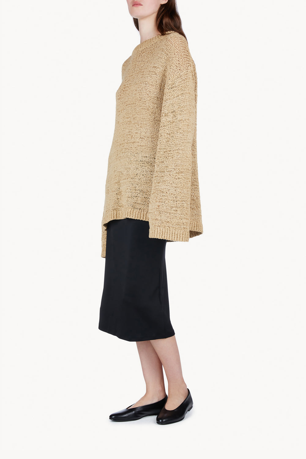 With its relaxed proportions, the Juin Knitted Top is crafted in a luxurious cotton blend yarn. Featuring a wide neckline and long generous sleeves, this timeless summer piece works for a casual look when paired with the Sade Jean, or wear with the Renee Skirt for an effortless summer occasion look.