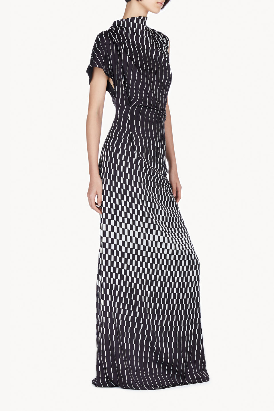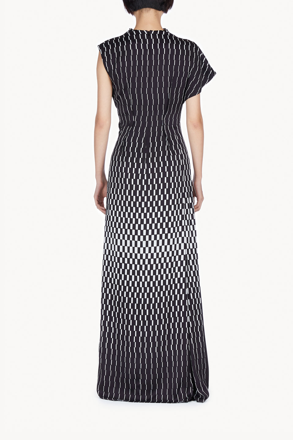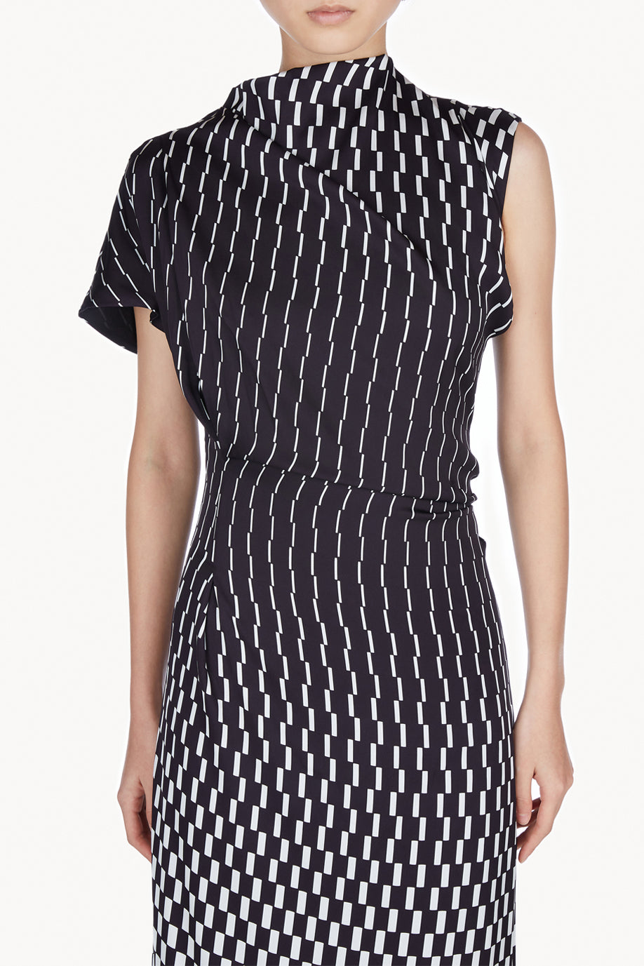 A standout piece from the Resort collection is the June Dress. Featuring an asymmetric draped detail and crafted in luxurious silk, the June Dress with its statement monochrome print is a modern take on refined eveningwear.