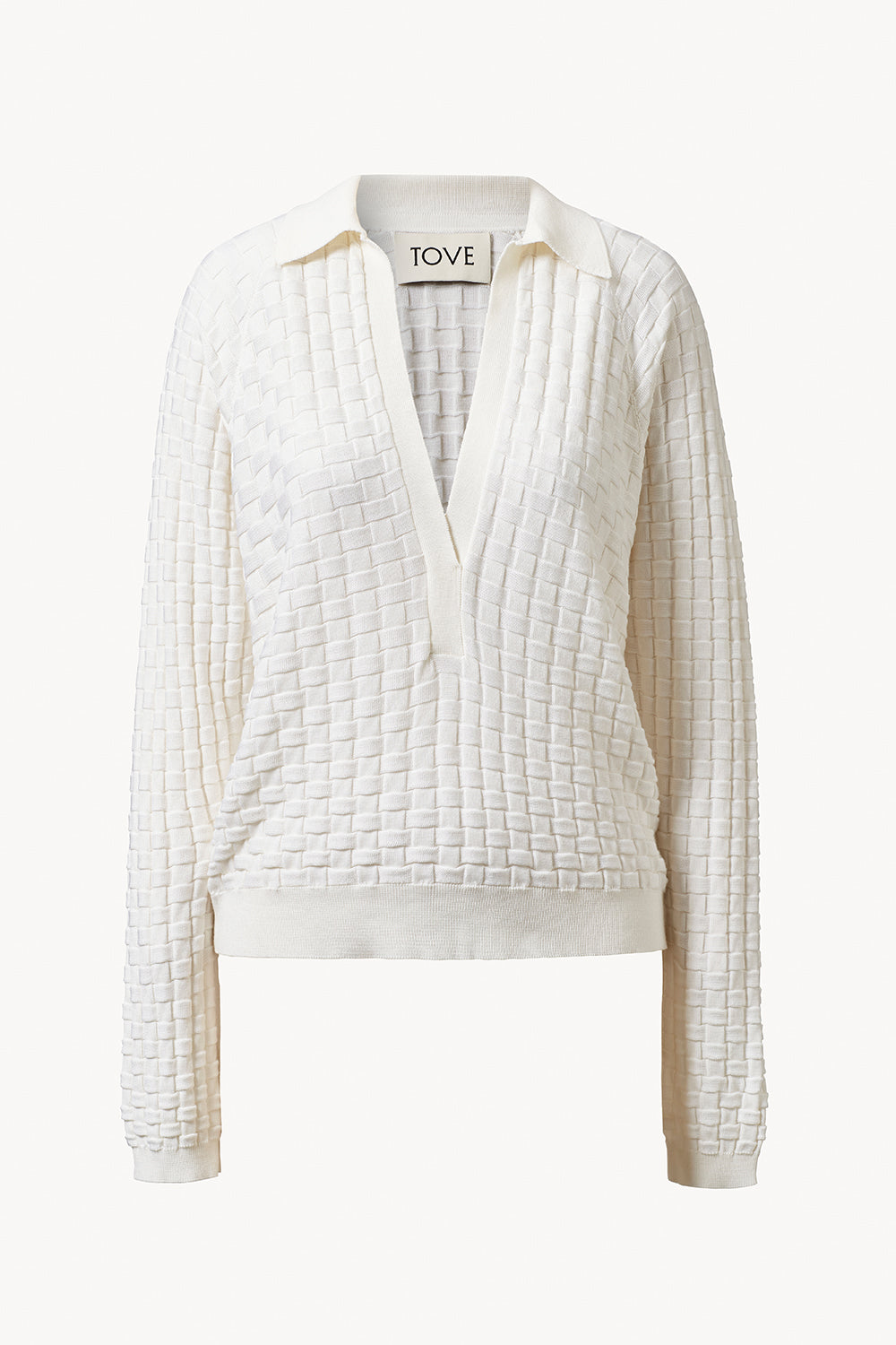 With its relaxed proportions, the Juniper Knitted Top is crafted in a dry handle viscose yarn from our Italian Mills with beautiful lustre. A textured basket-weave stitch and collared detailing leads to a deep v-shaped neckline, creating a relaxed, effortless look. For an elevated day look, pair with our Axel Trousers.