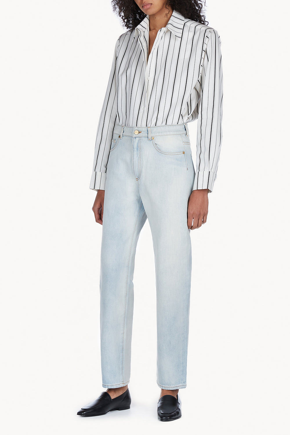 Crafted from cotton, our Kobe Jean features a tapered-leg silhouette. Featuring classic five pocket detailing and zip fastening in a timeless soft bleached denim, these mid-rise jeans are sure to be an essential wardrobe piece for many seasons to come.