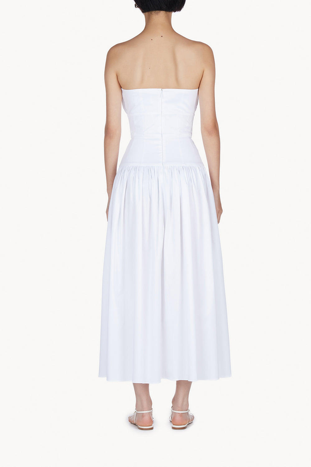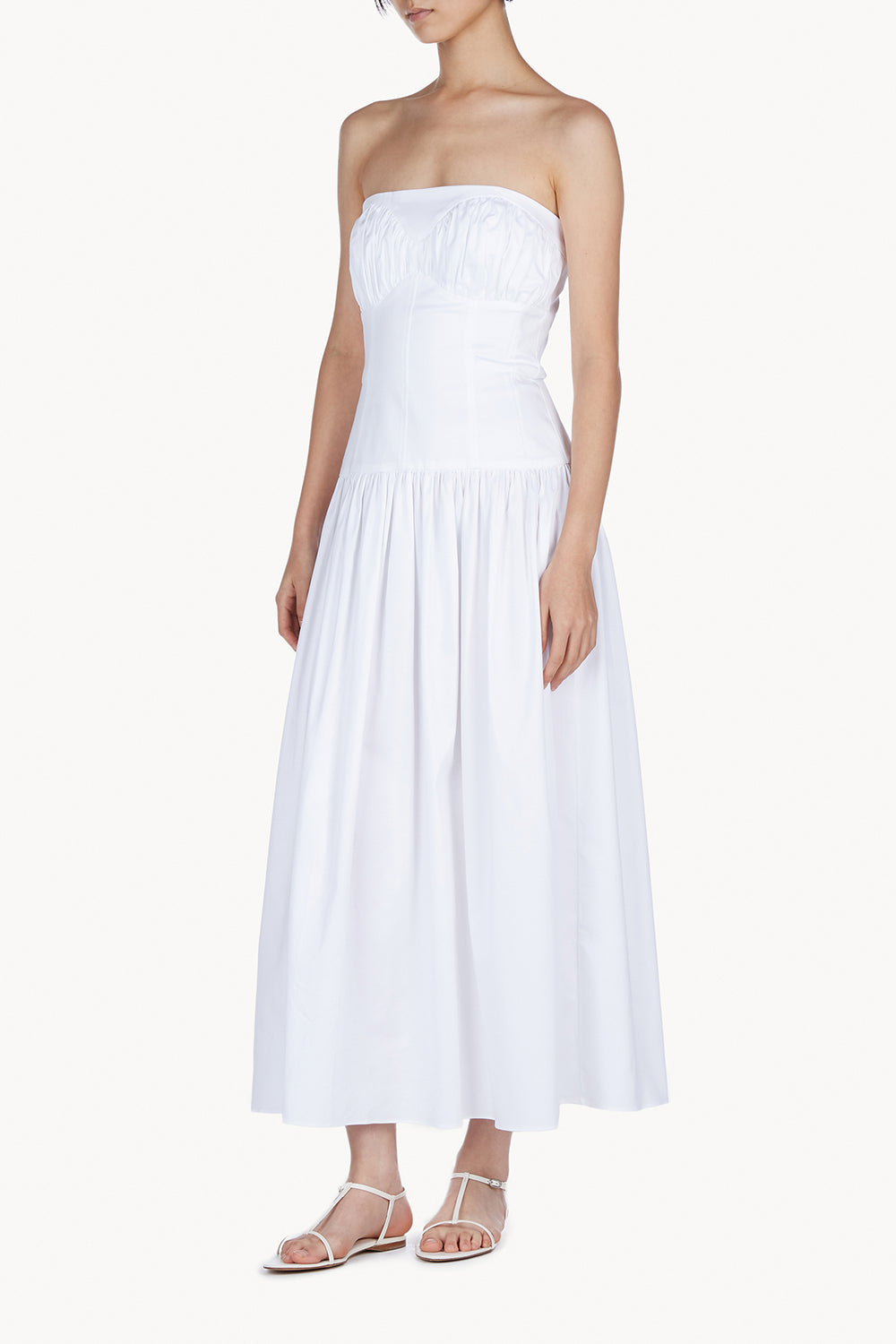 The Lauryn dress is a beautifully, feminine strapless sundress crafted from crisp cotton. Featuring our signature gathered detailing that runs throughout the spring summer collection, the Lauryn Dress is perfect worn for a summer occasion or warm days by the beach. The Lauryn Dress has a gathered skirt that falls gently to the hem at the perfect length finishing just above the ankle.