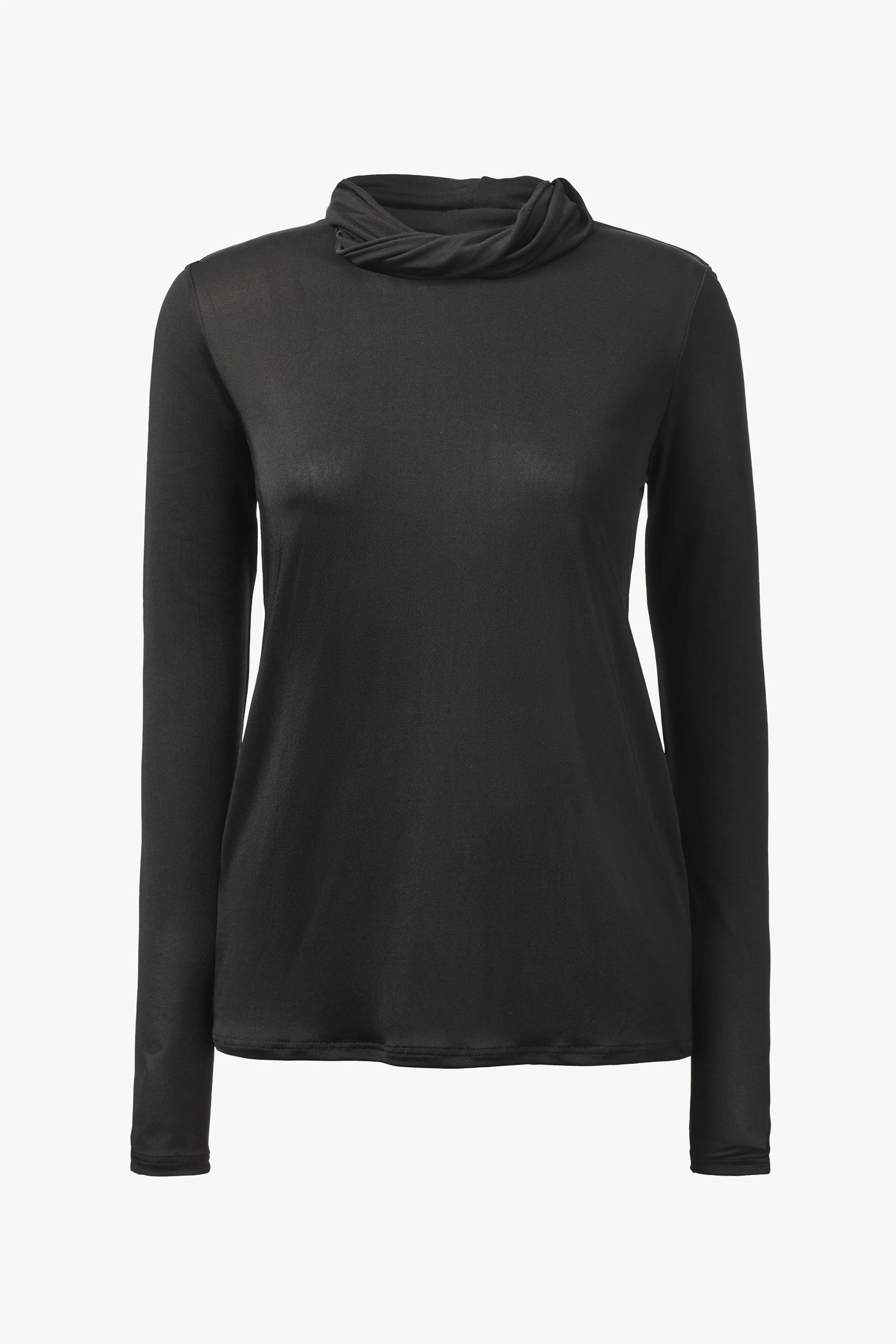The Lisette Top Black in is crafted from soft viscose jersey for a luxurious feel and fluid drape. A distinctive twist neckline adds subtle structure to the Lisette Top’s minimal, close-fitting silhouette. Perfect worn alone or as sleek layering piece for a timeless, elevated look.