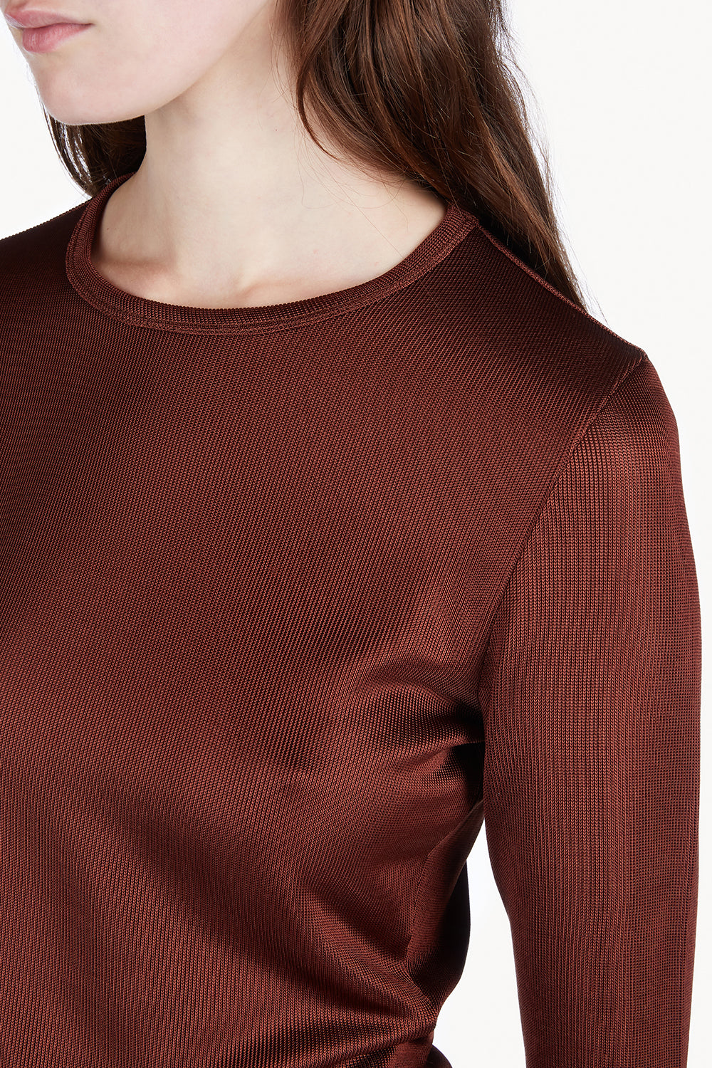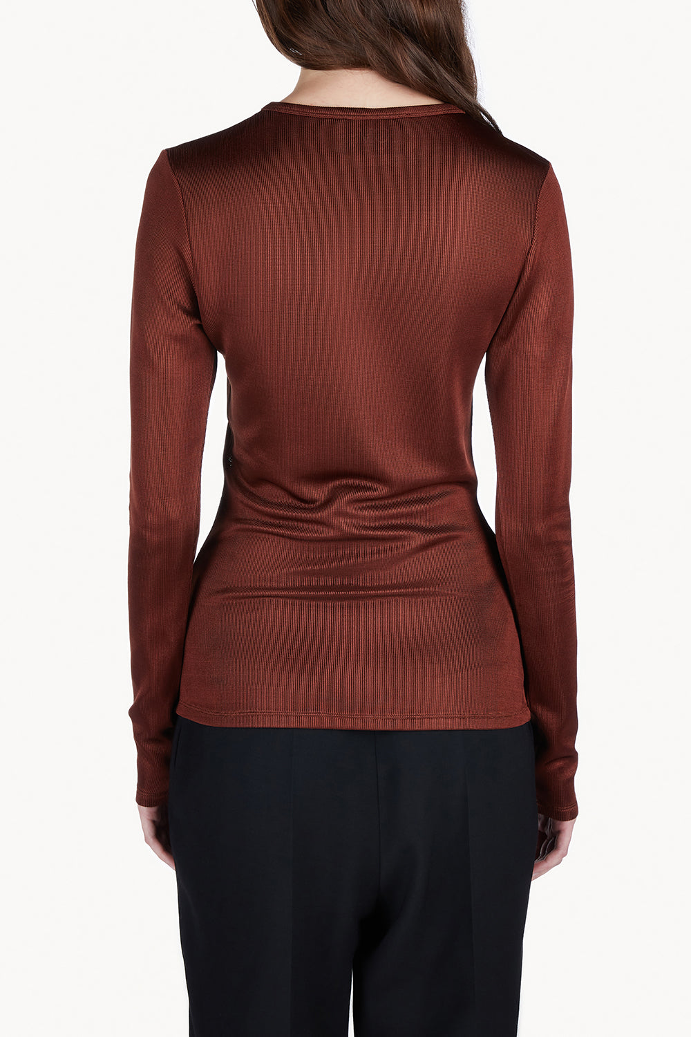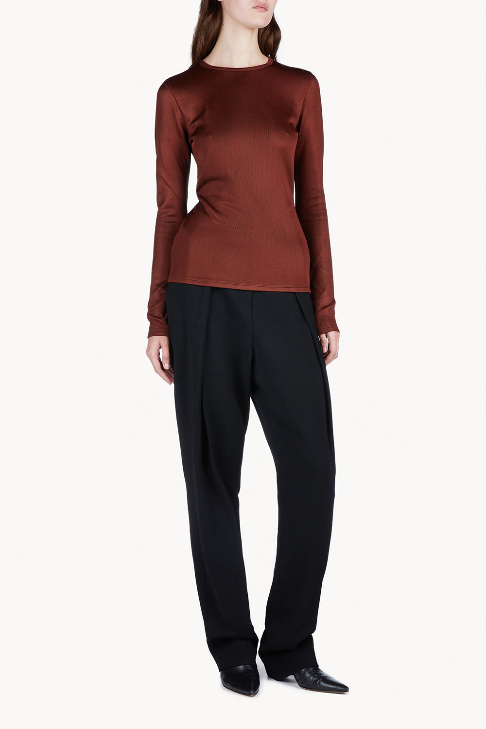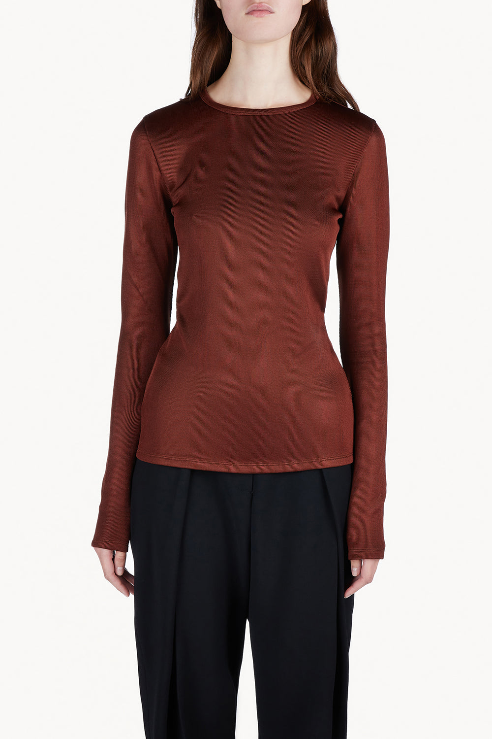 The Mayra Top is crafted from a fluid Italian jersey with a liquid sheen. Featuring long slim sleeves and finished with a crew neckline. The Mayra Top works well for day through to evening. Wear with the Marlo Jean for the perfect day to evening look.