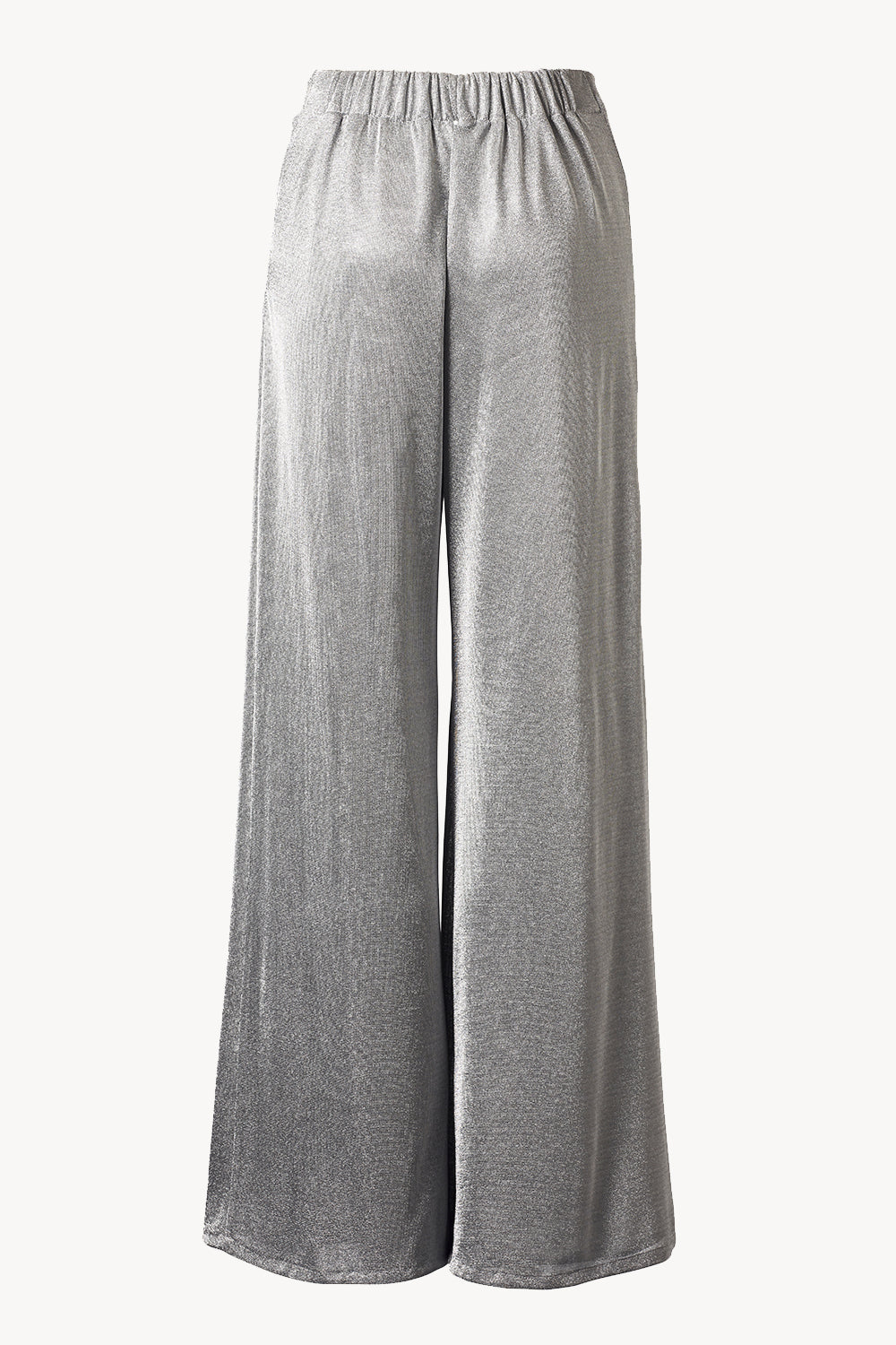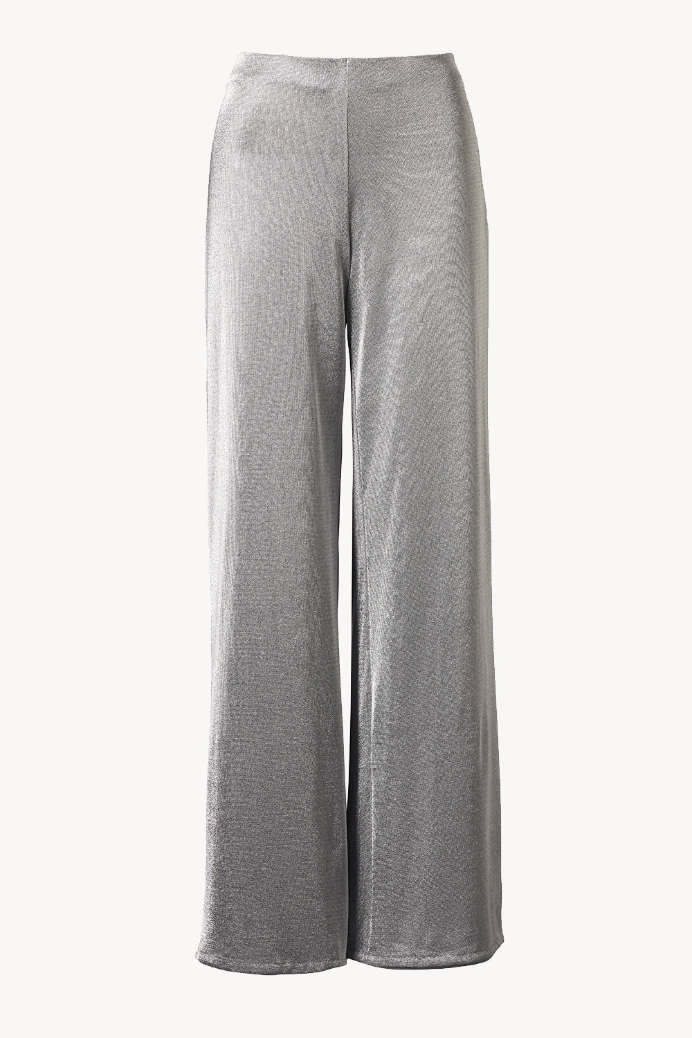 Effortless eveningwear is epitomised in the Michelle Trouser. Crafted in a soft, silver knitted lurex yarn with delicate lustre, these wide leg trousers are the perfect way to make a statement. With a flat fronted waistband detail, these flood length trousers drape beautifully. Pair with the Noor Top and Marley Top to recreate our runway look.