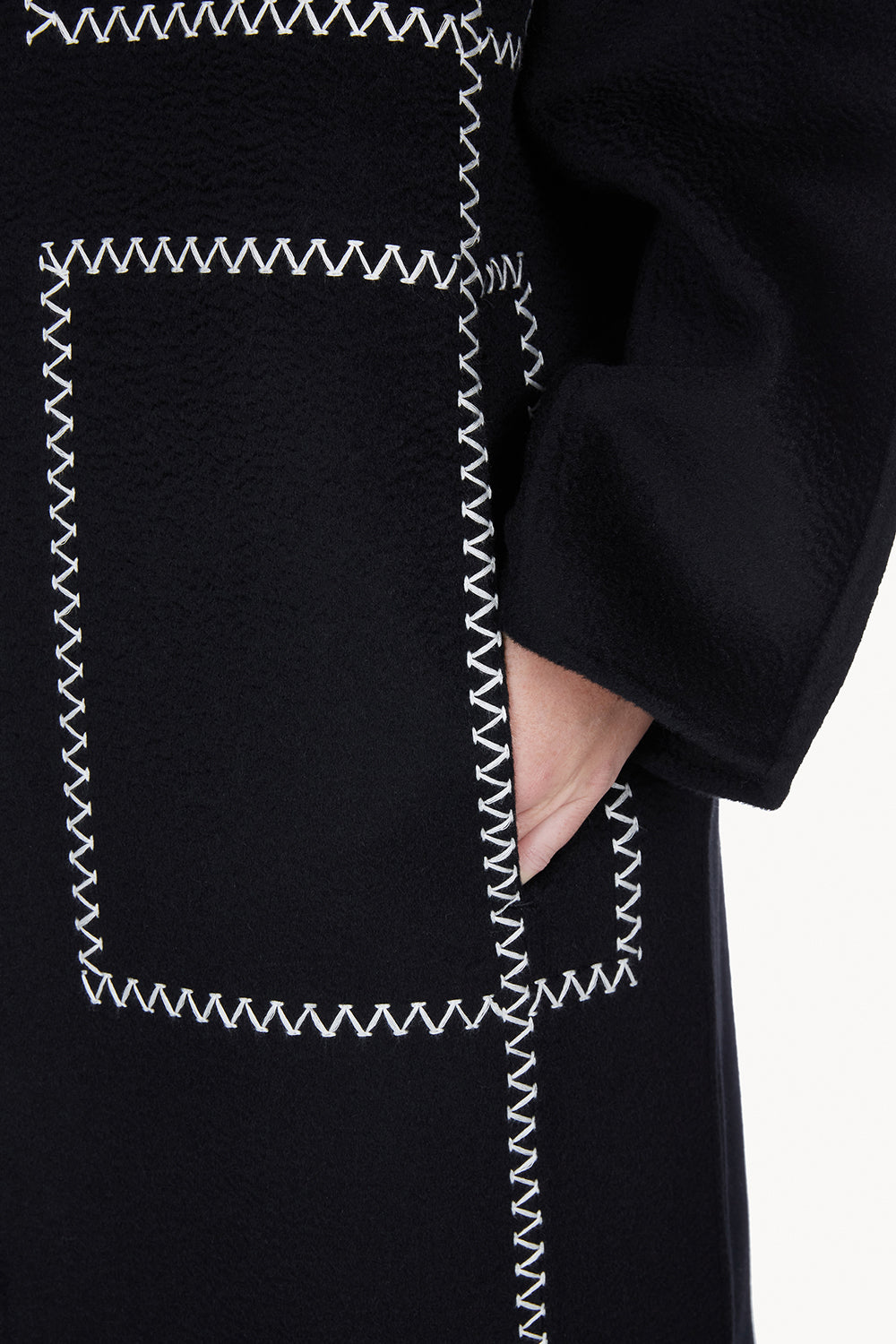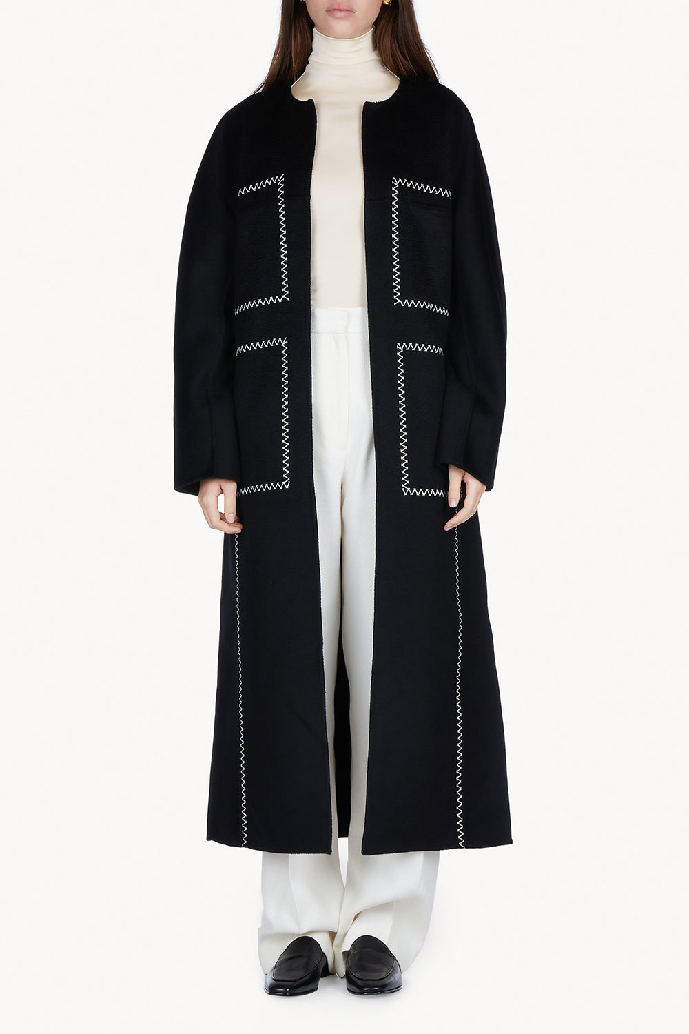 Crafted from a luxuriously soft lambswool the Noelle Coat is the ultimate transeasonal coat. With an edge to edge front closure and a contrast zig zag stitch detail at the centre front of the coat, this relaxed coat is an effortless piece that will see you through the season.