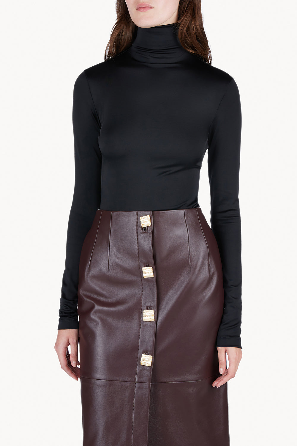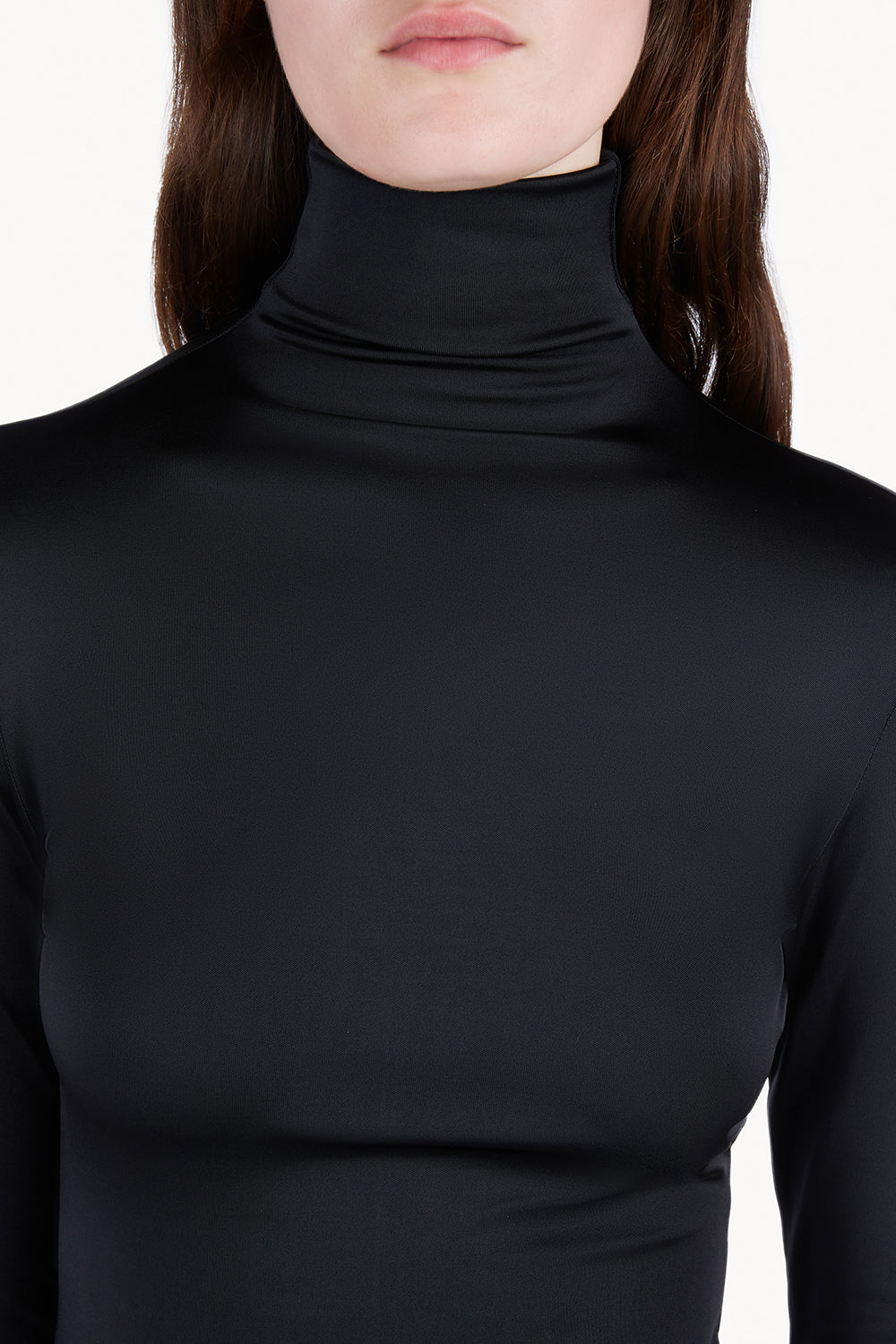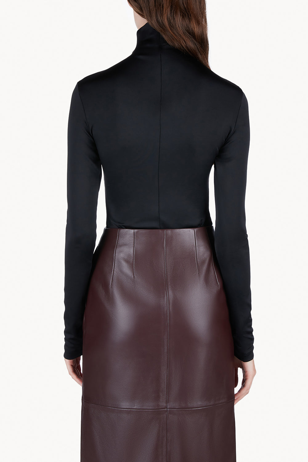 Elevated and luxurious, the Noor is a beautiful piece to add to your wardrobe. Crafted in a fluid Italian jersey with a liquid sheen, the slim fit and high neck make this a versatile day to evening piece.