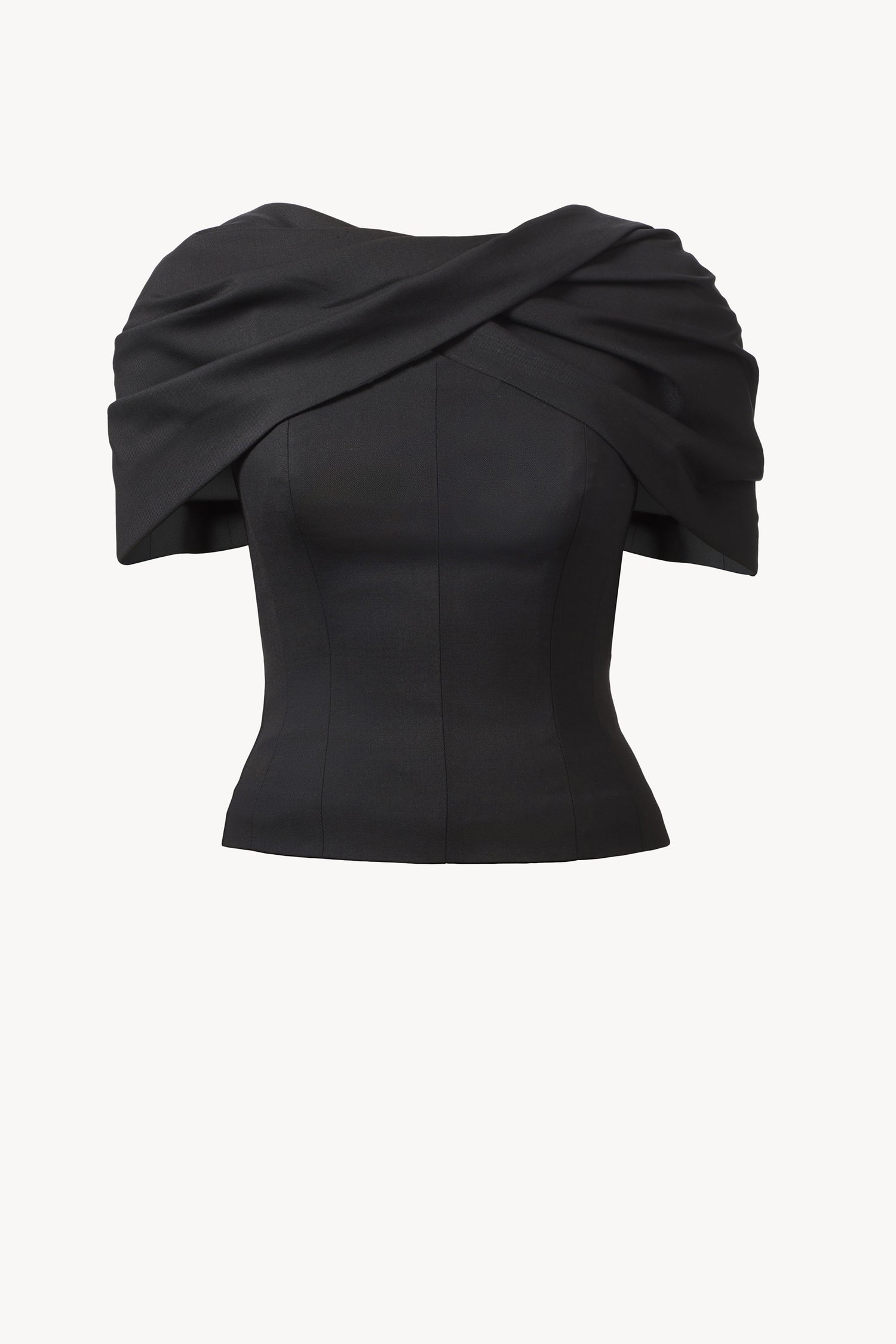 A sculptural update. Crafted in a black wool blend, the Orrla Top is designed with a twisted, origami fold detail at the neckline that falls elegantly around the shoulders. The fitted bodice that finishes on the hip, is closed by a concealed centre back zip. The perfect piece for event dressing this winter season.