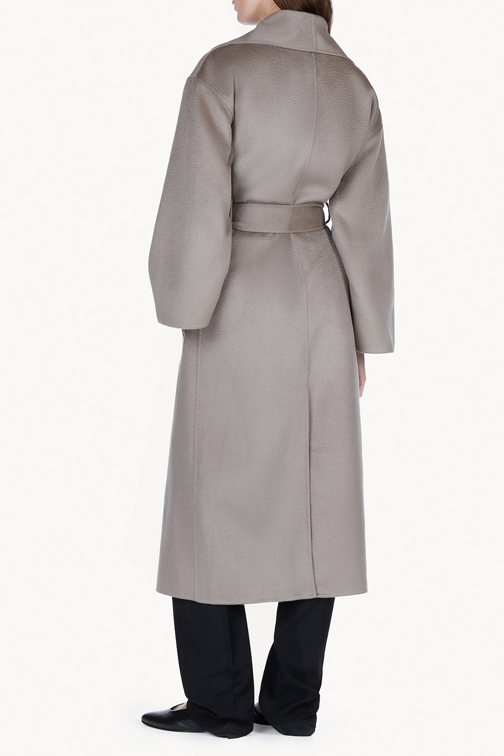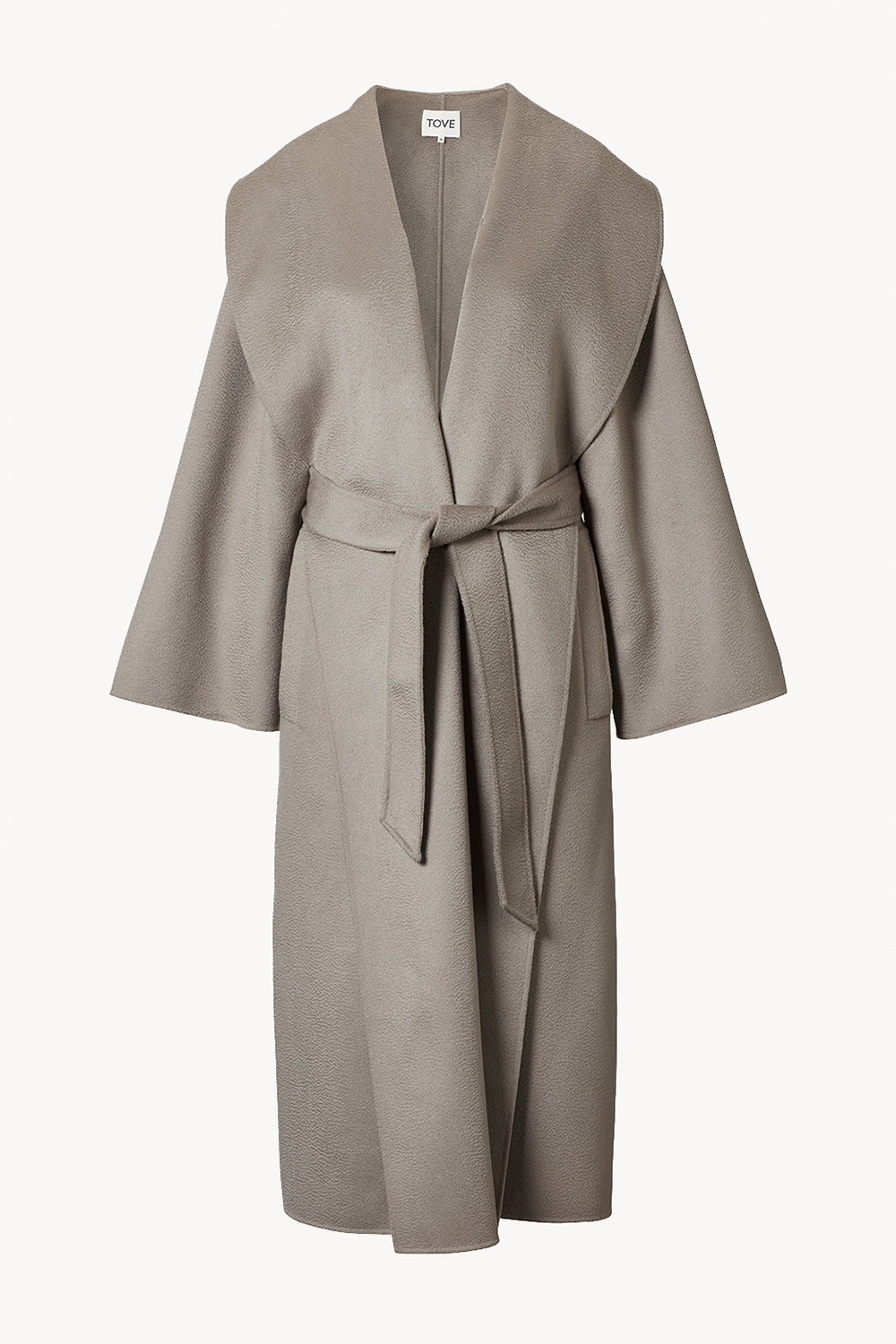 Made from a luxurious lambswool, the Rebeca coat is shaped to a generous, enveloping silhouette with expansive shawl lapels.