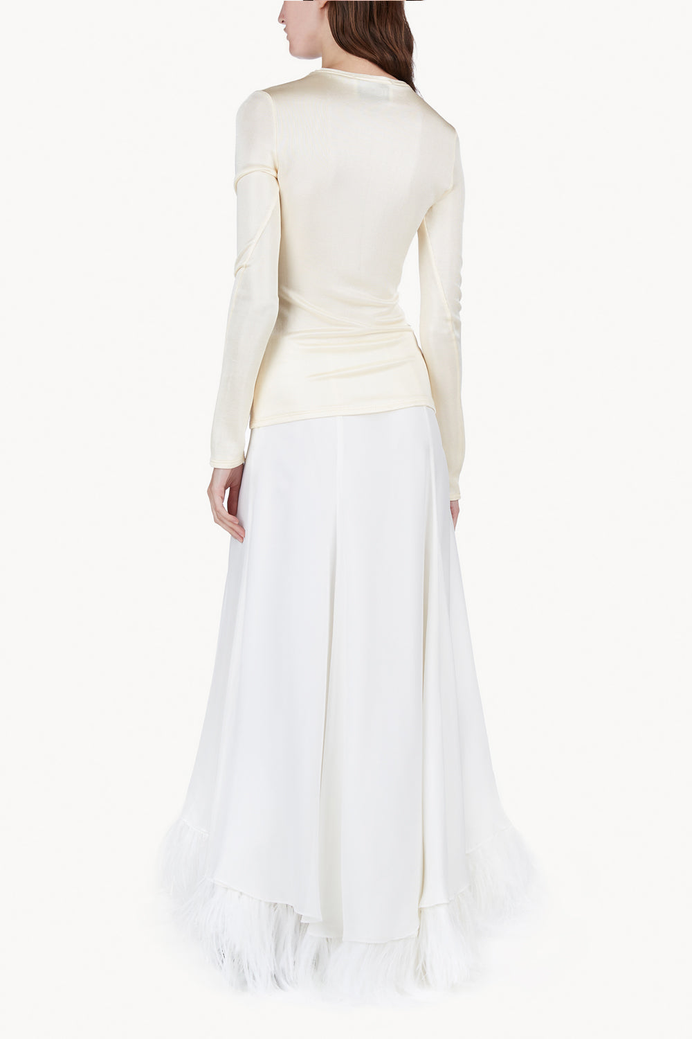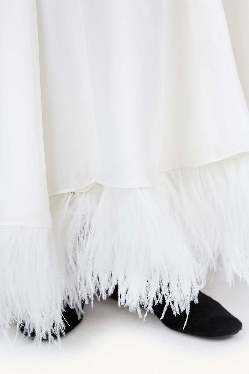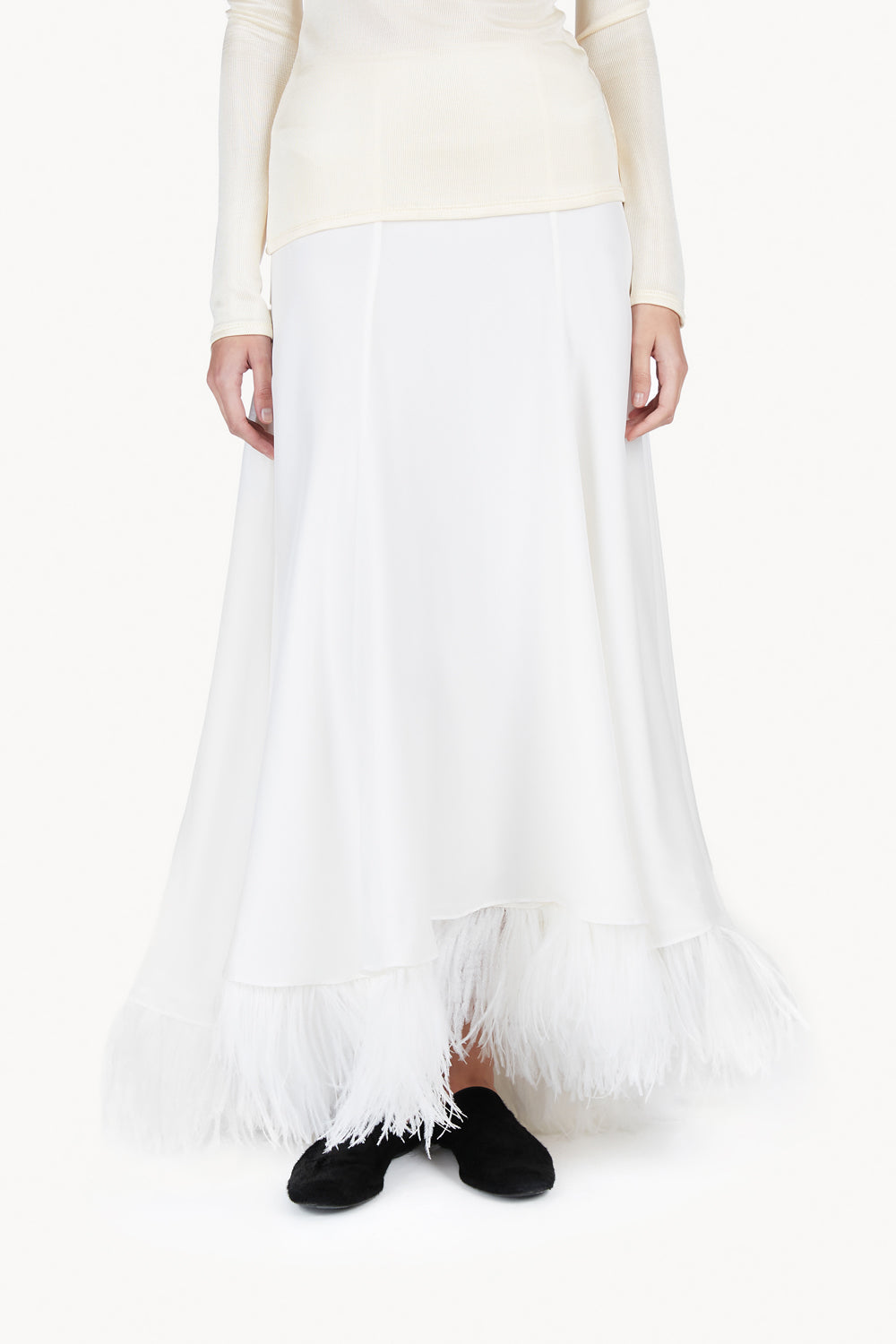 The Renee Skirt is a standout piece from the Spring Summer 2024 collection. Crafted in sumptuous layers of feather-light silk adorned with a soft feather trim - the Renee Skirt creates ethereal movement when worn. Wear with the Juin Knitted Top for the perfect relaxed occasion look this Spring Summer season.