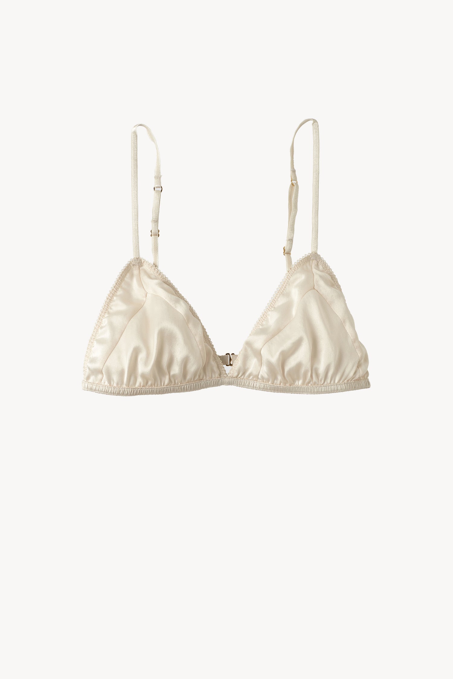 The Seren Bra is crafted in silk satin and features a soft triangle cup. It has a gold clip fastening and adjusters on the strap for a comfortable fit.