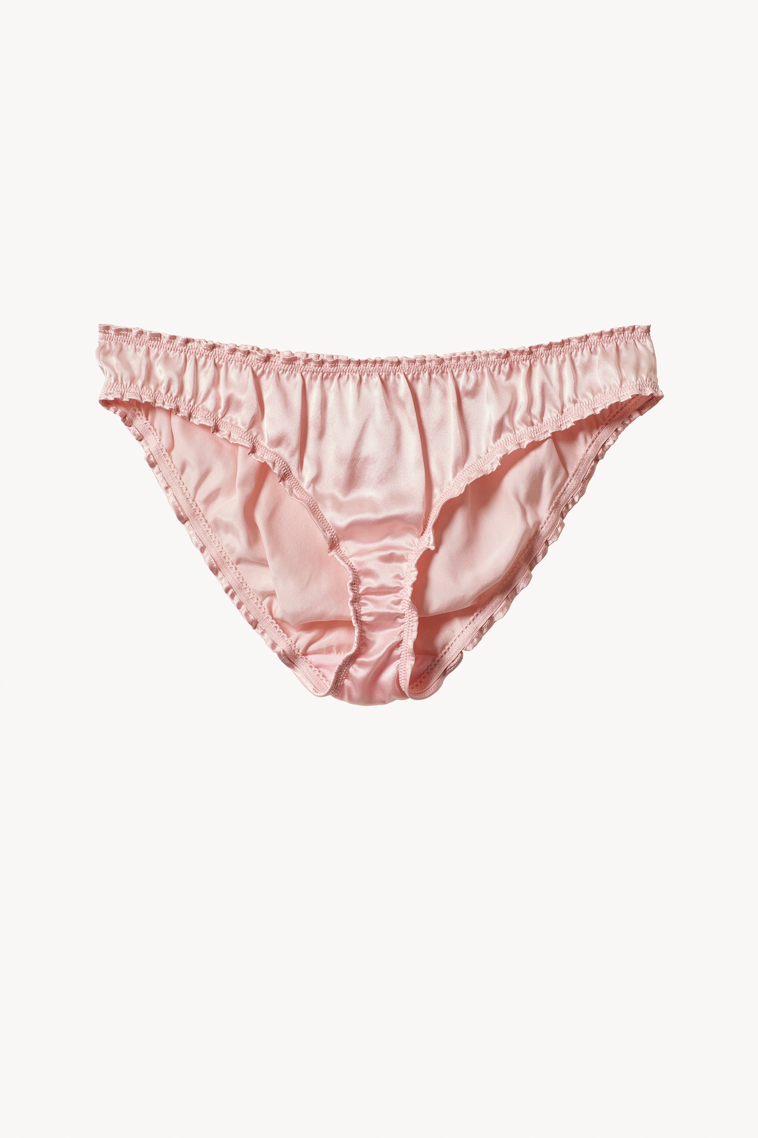 The Seren Pant is crafted in silk satin and features a ruffle detail around the waist and leg.