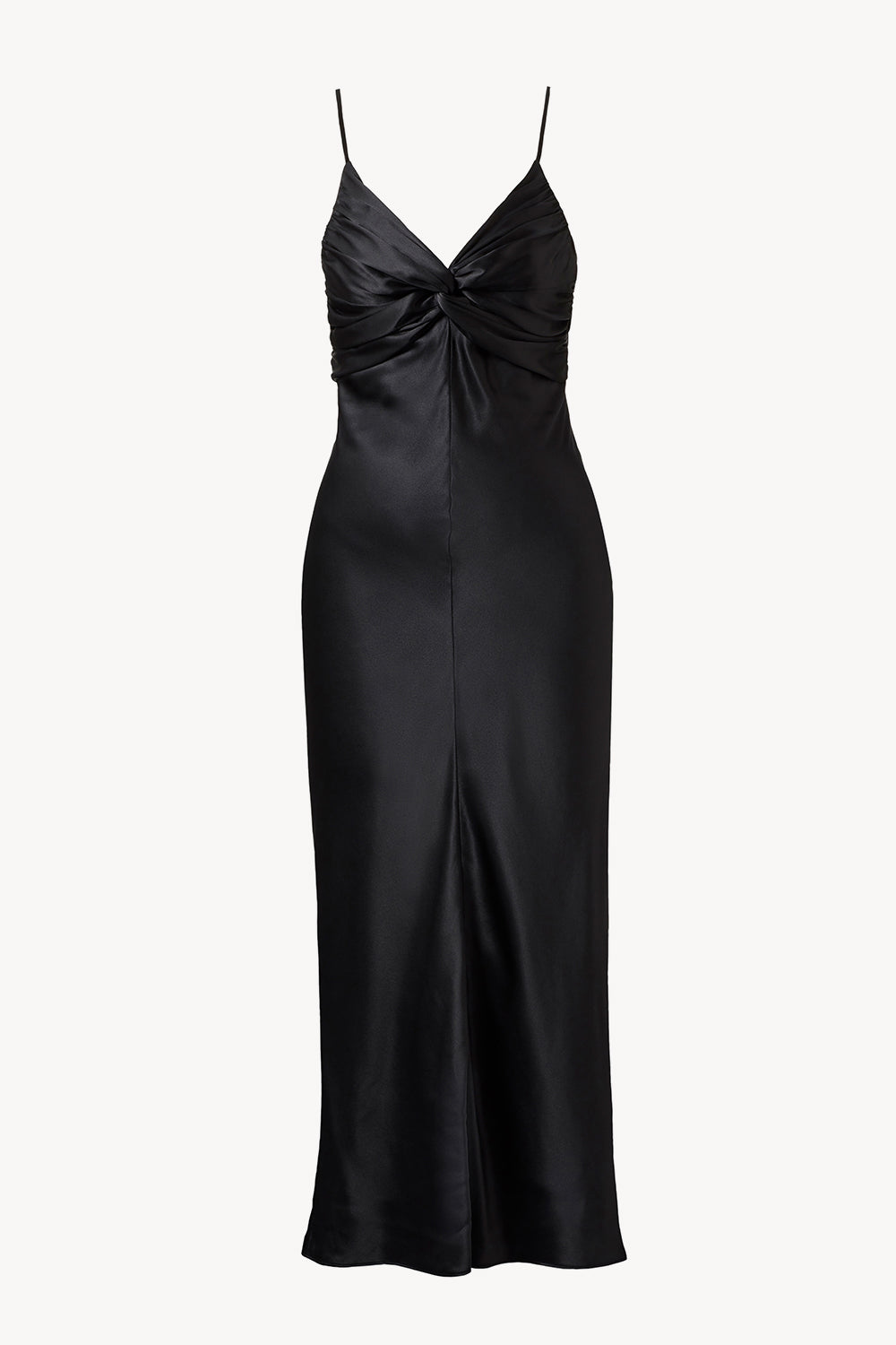 The Sofia Dress in luxurious silk features our TOVE signature twist detail across the bust along with generous ties that secure at the back. The delicate straps are adjustable and the bias cut provides the perfect elegant silhouette.
