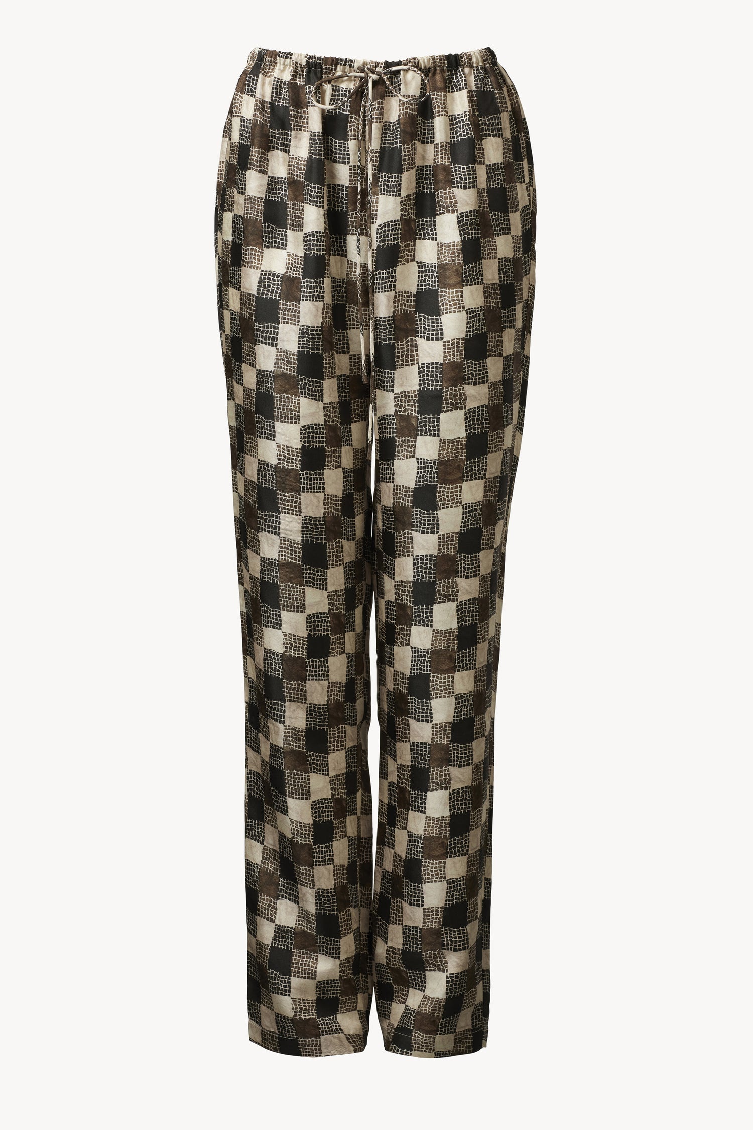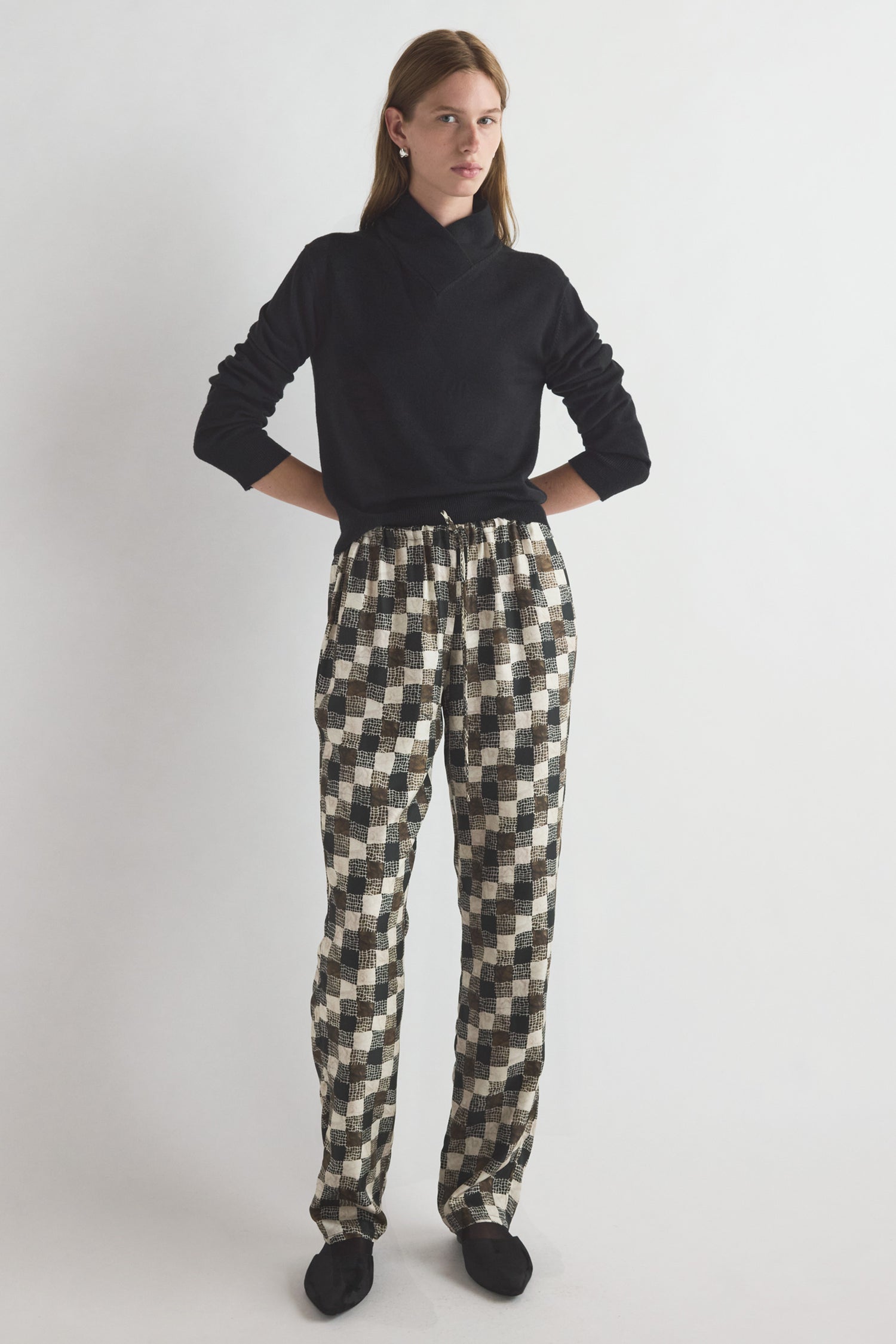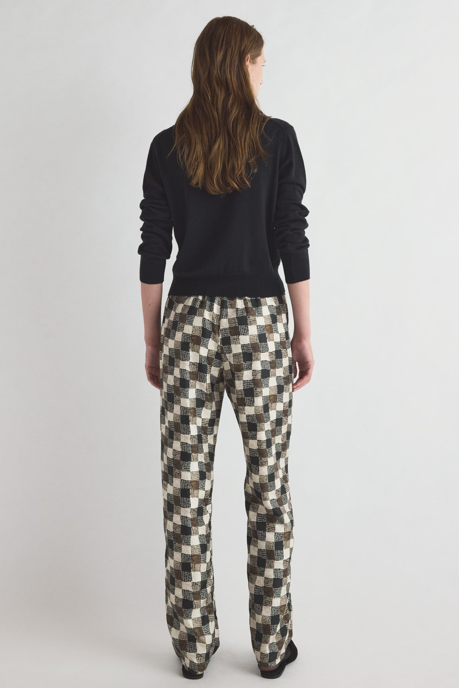Woven from a soft viscose-wool blend with a hint of stretch, the Terri Trouser in Textured Check Print features a gathered drawstring waistband and a straight-leg silhouette. The Terri Trouser pairs effortlessly with the Amal Top for a refined, elegant look.