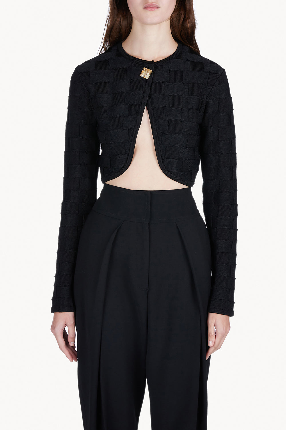 This Tijen Knitted Top is crafted in an Italian viscose yarn with a textural basketweave stitch design and delicately soft lustre. Fastened by a single button closure featuring our signature textured golden button and finished with slim sleeves, this is the perfect overlaying piece to finish an evening look.